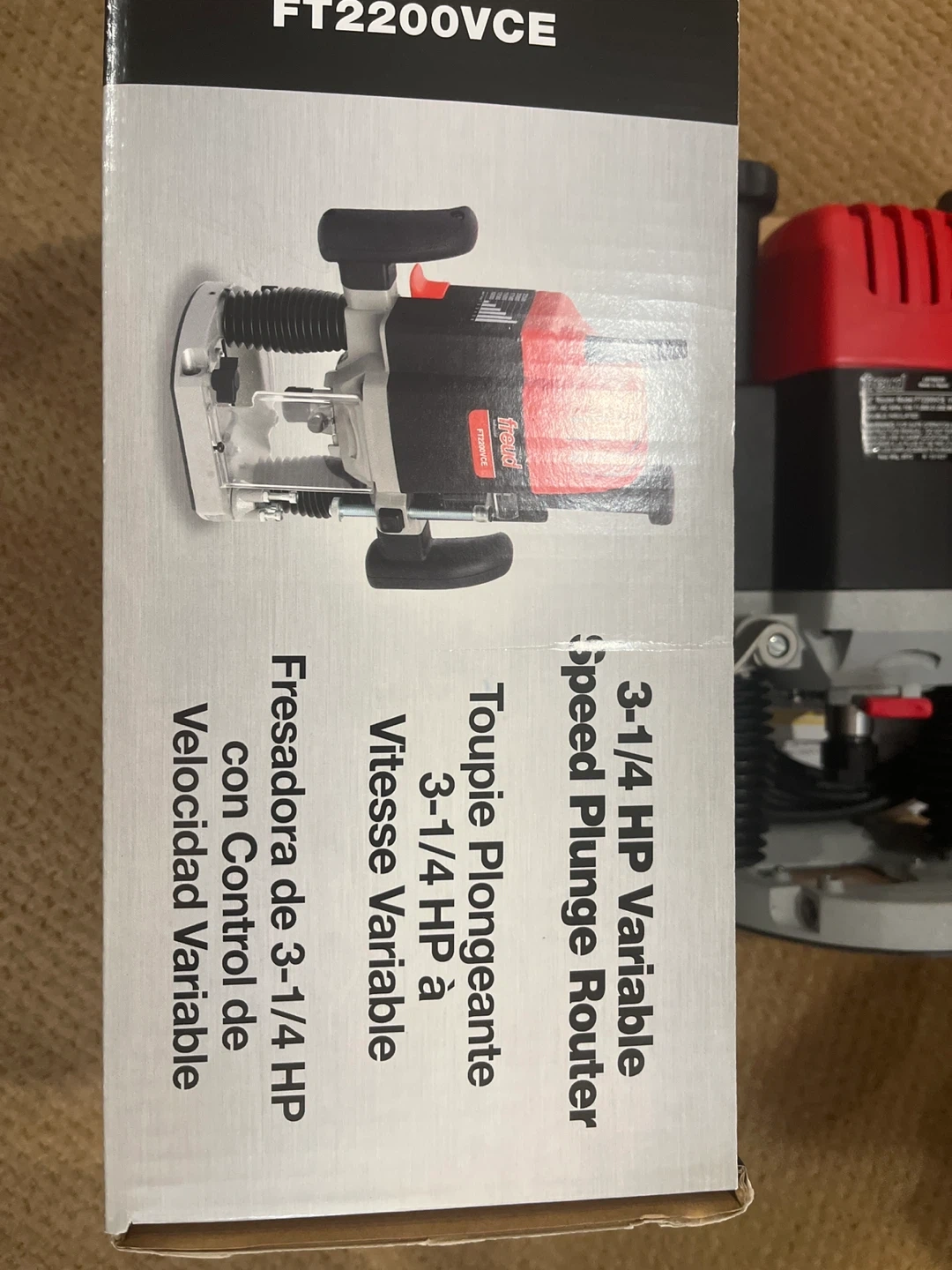 60Selling a Freud FT2200VCE 3-1/4 HP Variable Speed Plunge Router. It's in great shape and ready for your next project! The box includes information in both English and French.