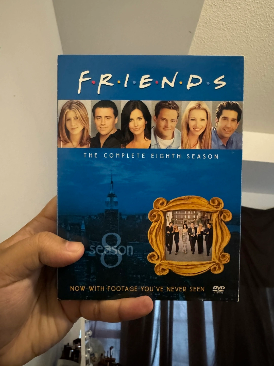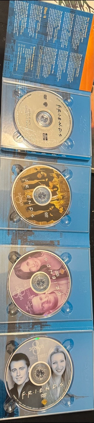 10Selling the complete eighth season of Friends on DVD! This deluxe 4-disc set includes previously unseen moments in all 23 episodes, plus exclusive DVD extras. Special guest stars include Brad Pitt, Sean Penn, and Alec Baldwin. Enjoy hours of laughter with this Emmy-winning season!