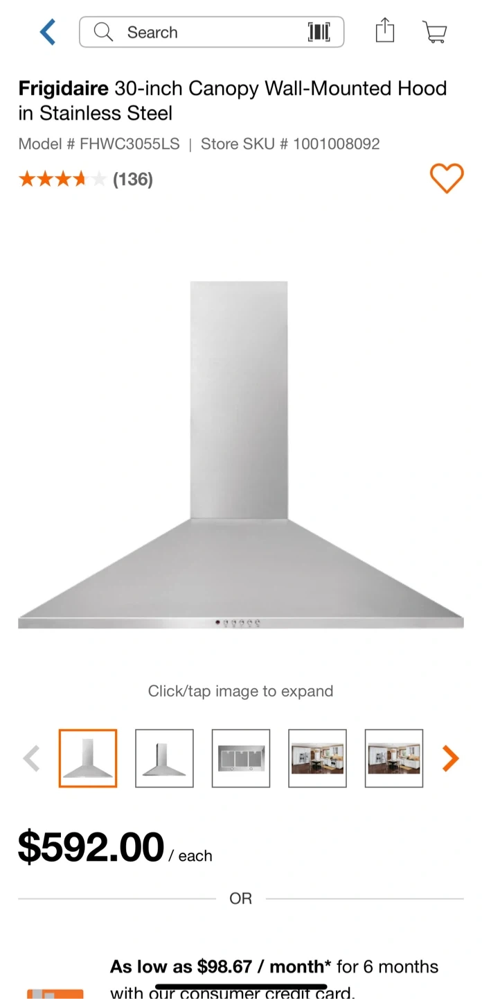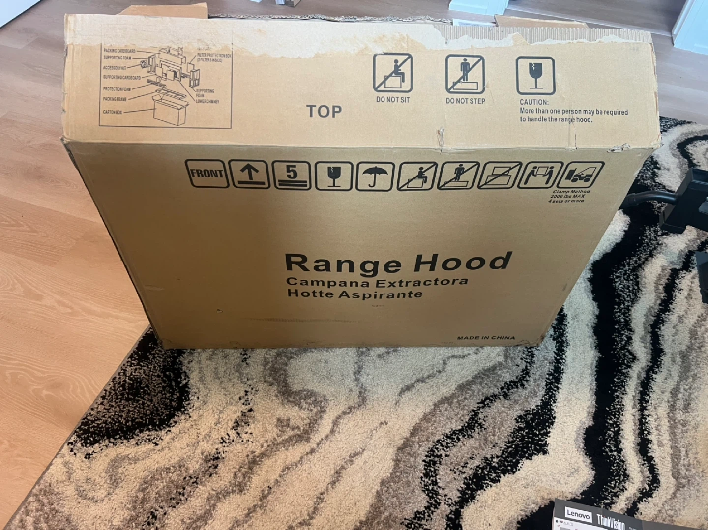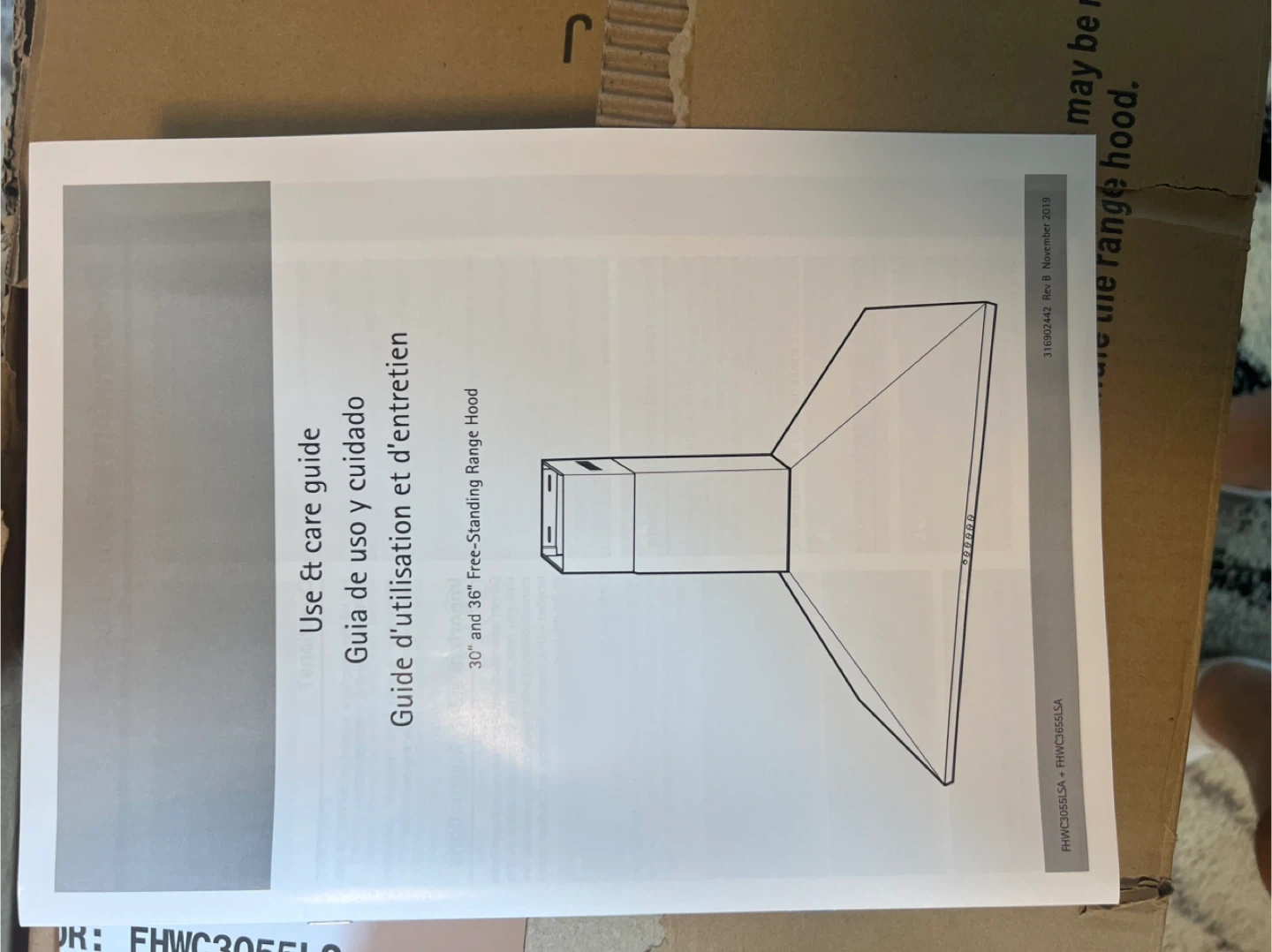 Selling a brand new in box Frigidaire 30-inch canopy wall-mounted range hood in stainless steel. Model number is FHWC3055LS. It comes with the original box and use & care guide. Originally bought for $592+ tax