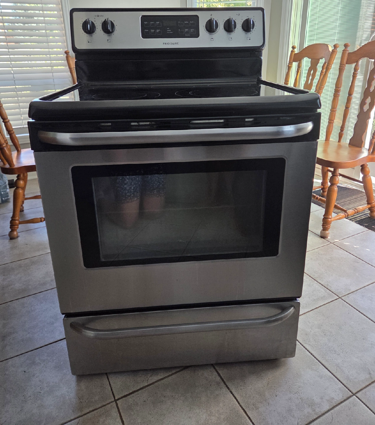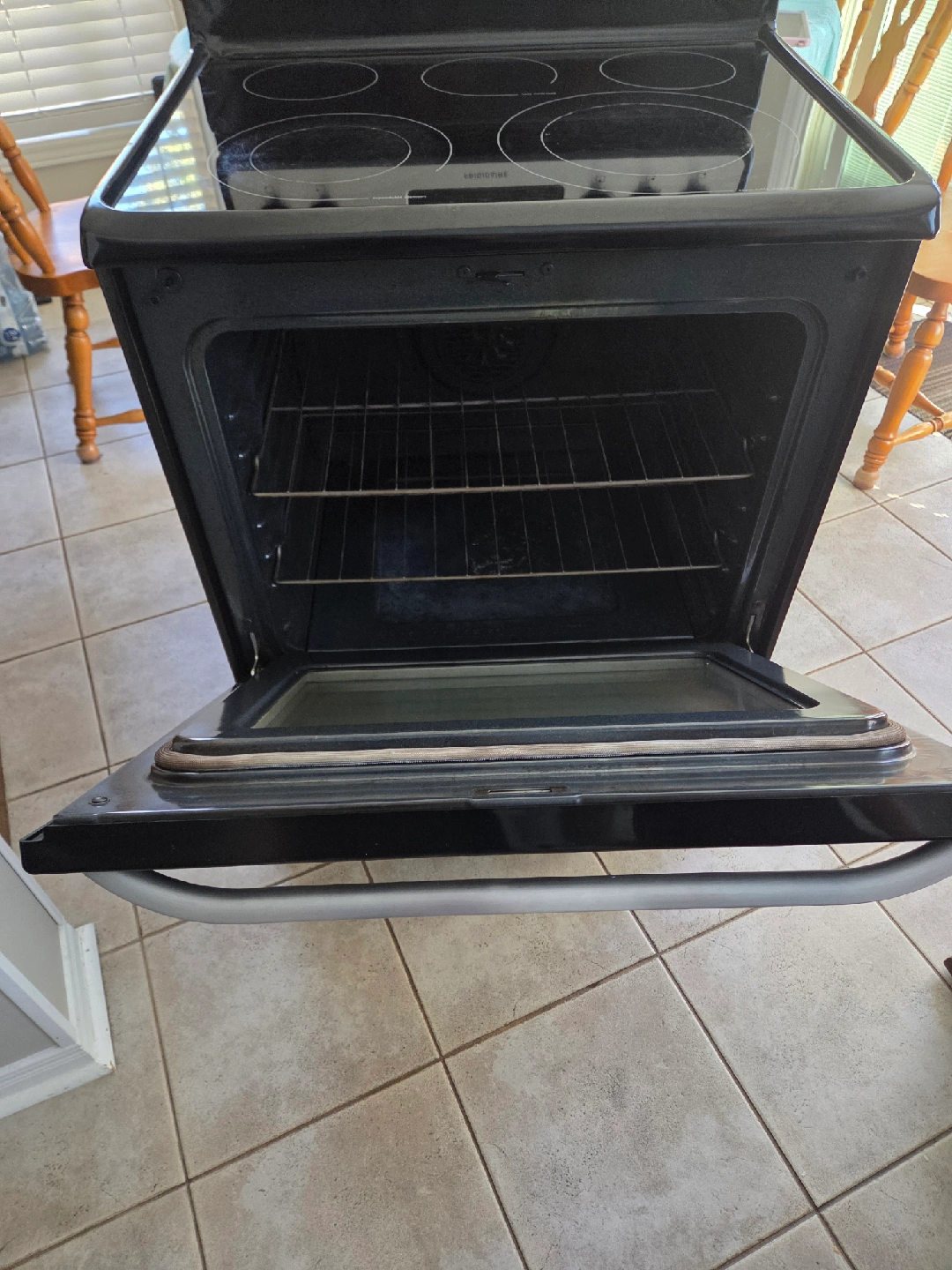 Selling a used Frigidaire electric range oven. It's in good working condition and ready for a new home! It features a smooth top and a self-cleaning oven