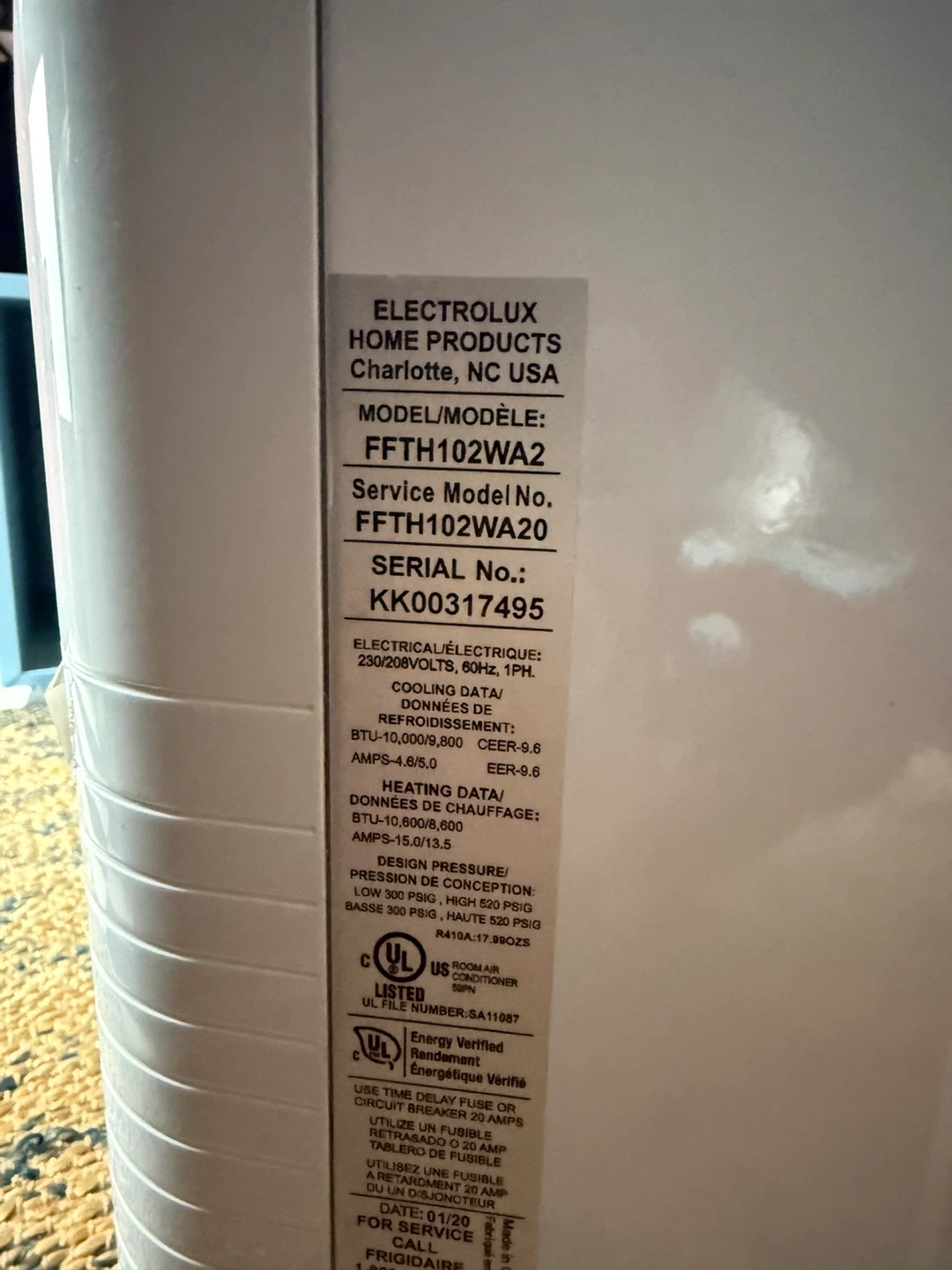 5Selling a Frigidaire room air conditioner! Great condition The model number is FFTH102WA2. It’s an amazing heater and AC.