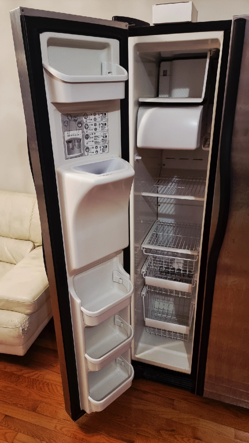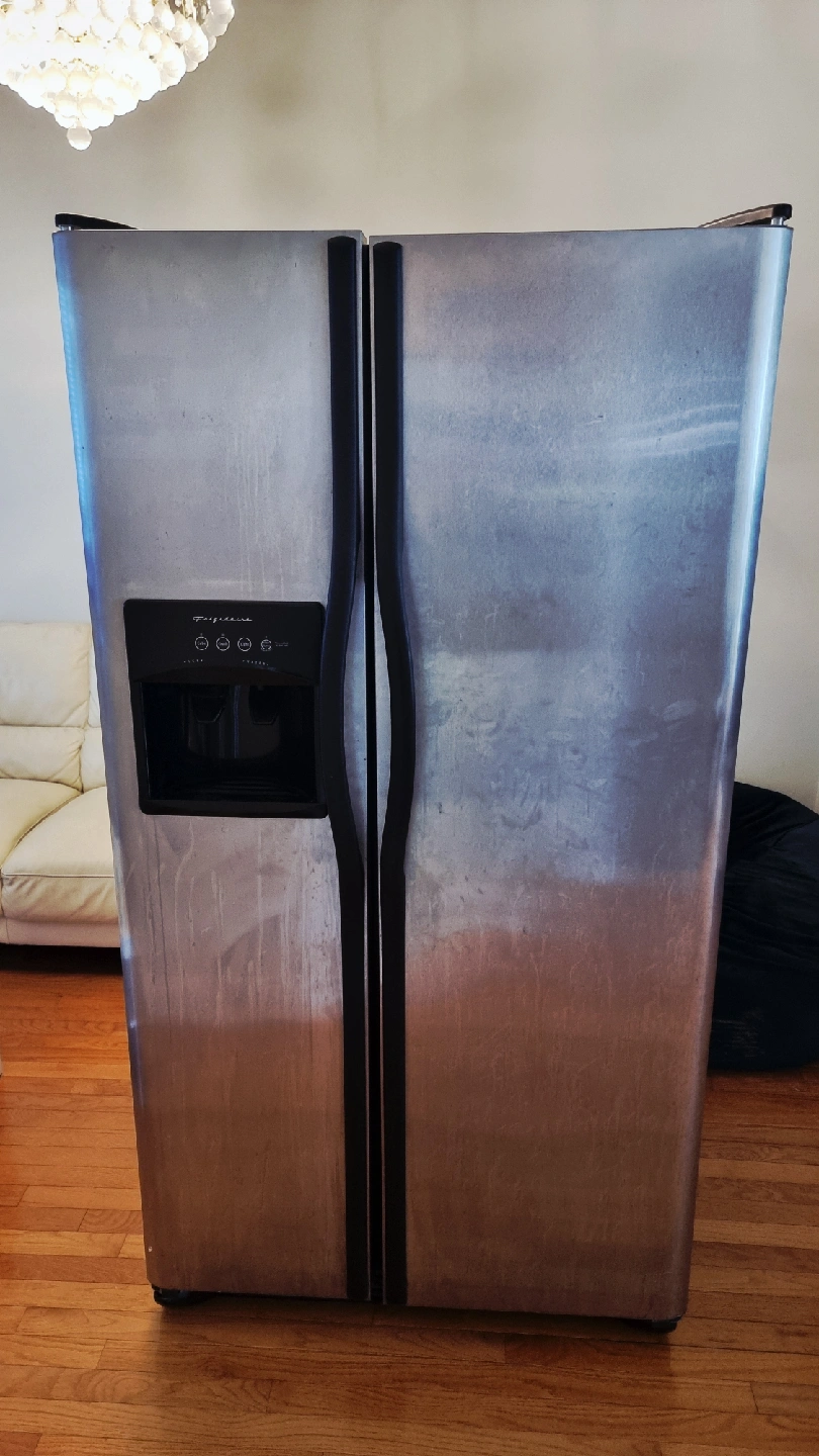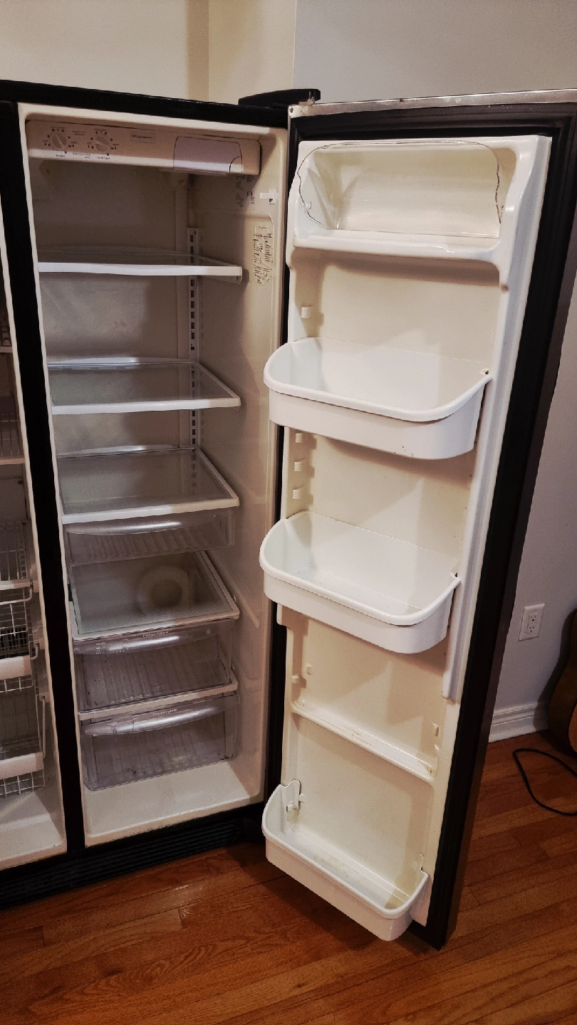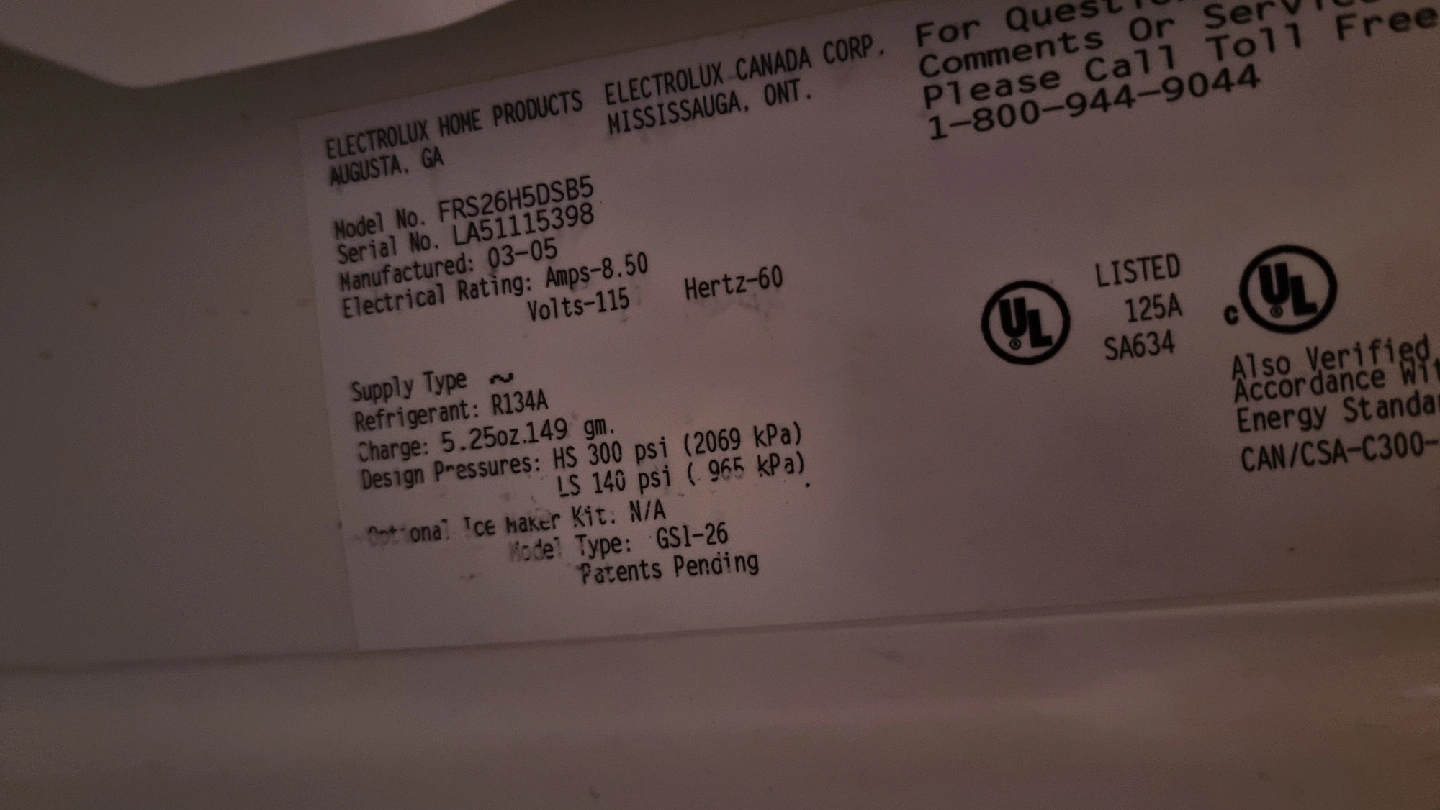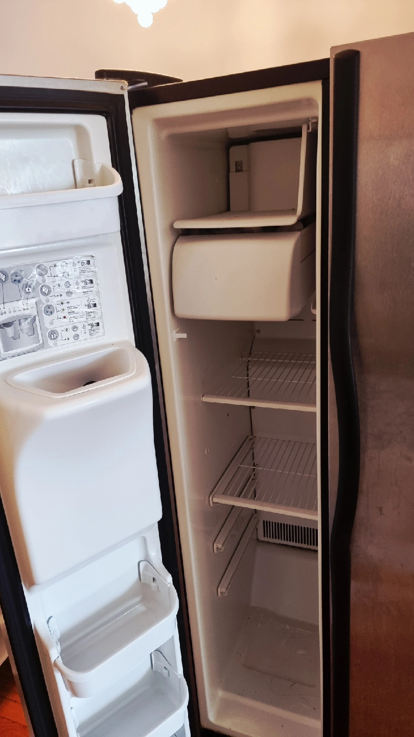 75Selling a Frigidaire side-by-side refrigerator. The model number is FRS26H5DSB5. It has a water and ice dispenser on the front. Inside, there are adjustable shelves and drawers for easy organization. It's a great addition to any kitchen! I will be giving you new extra water filter as well. I am posting it for free because one of the door partition is broken.