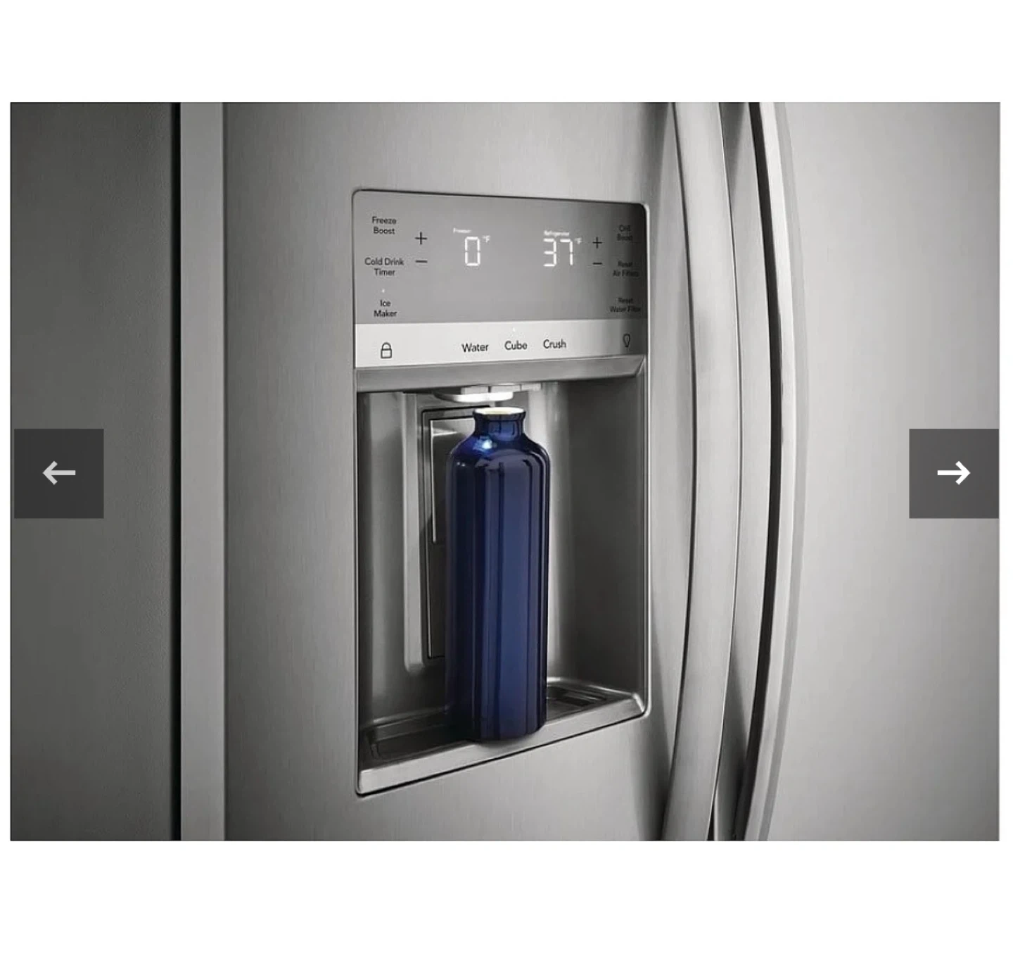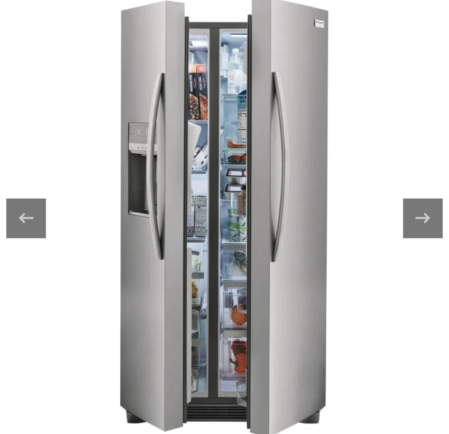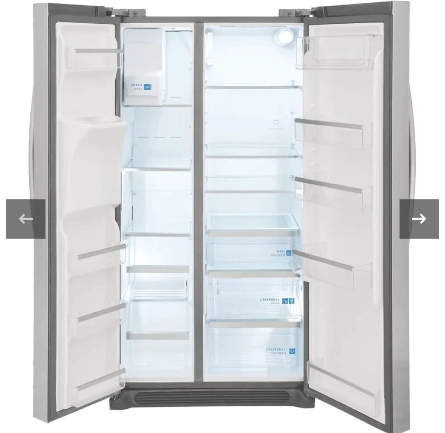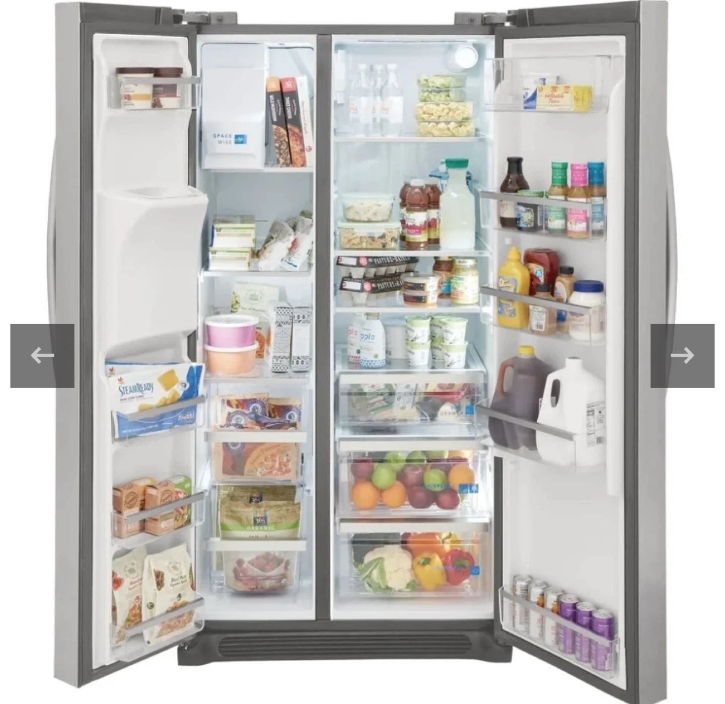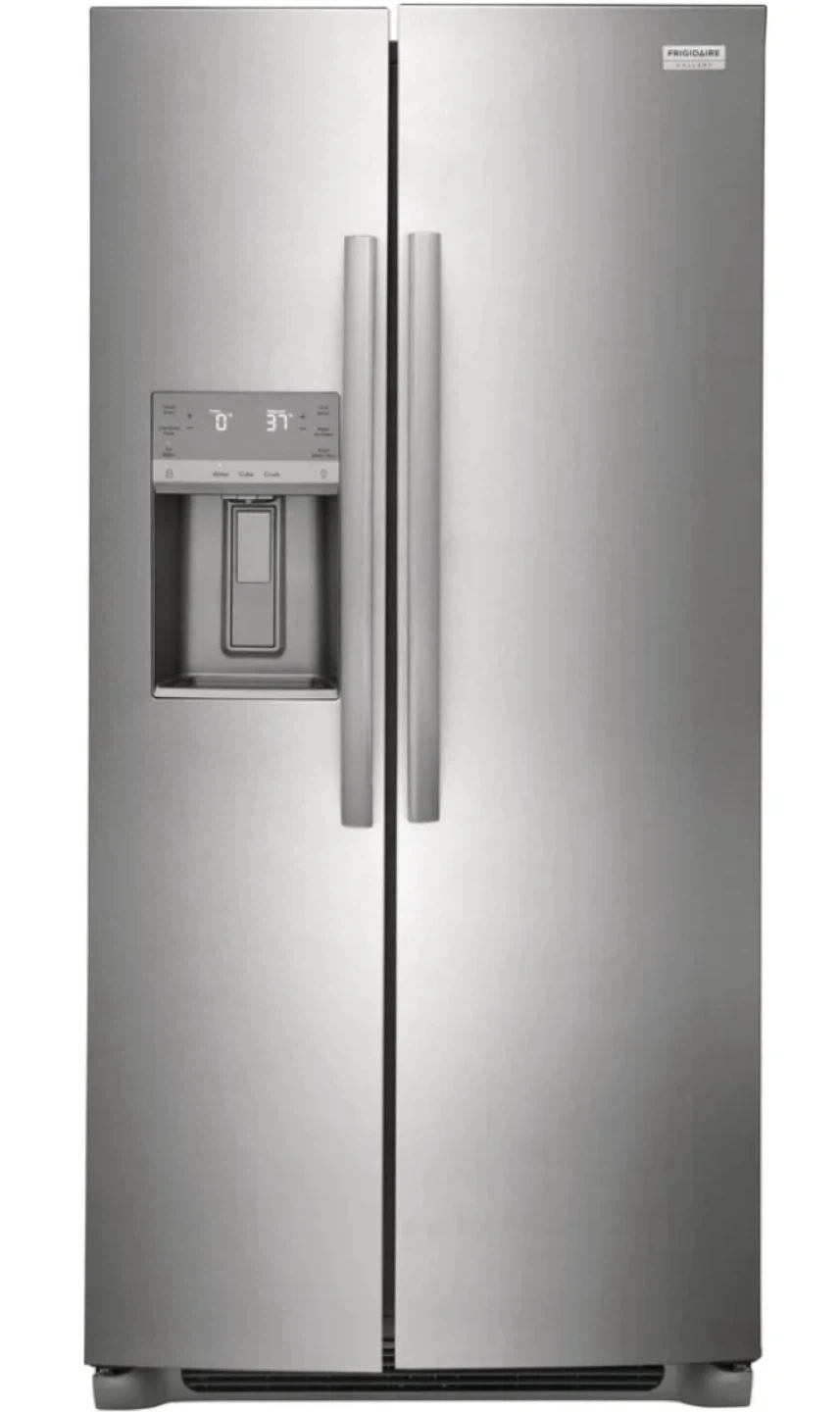 10Selling a Frigidaire side-by-side refrigerator in stainless steel. It's in great condition and ready to keep your groceries nice and cold! It features a water and ice dispenser on the door for easy access.