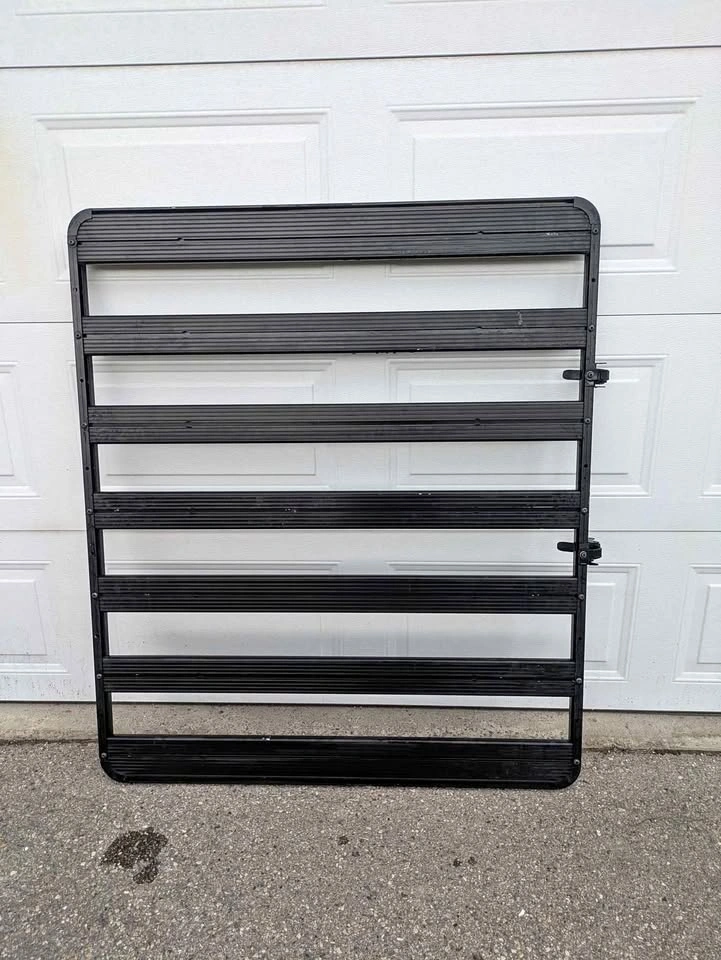 15For sale is my, mostly garage stored Front Runner Slimline 2. I bought it off a fellow who had it mounted to his Crosstrek but adapted it to my Forester and later to a Nissan Xterra. I kept it around for a while hoping that I would use it again when I purchased my frontier, but measured it up and I can't make it work while having our bikes over the tailgate. Includes: -Slimline 2 rack (46"x54") -Mounting brackets (looks like they would work with various factory rails) -Aero fins (reduces road noise) -Shovel keeper -Bottle Opener