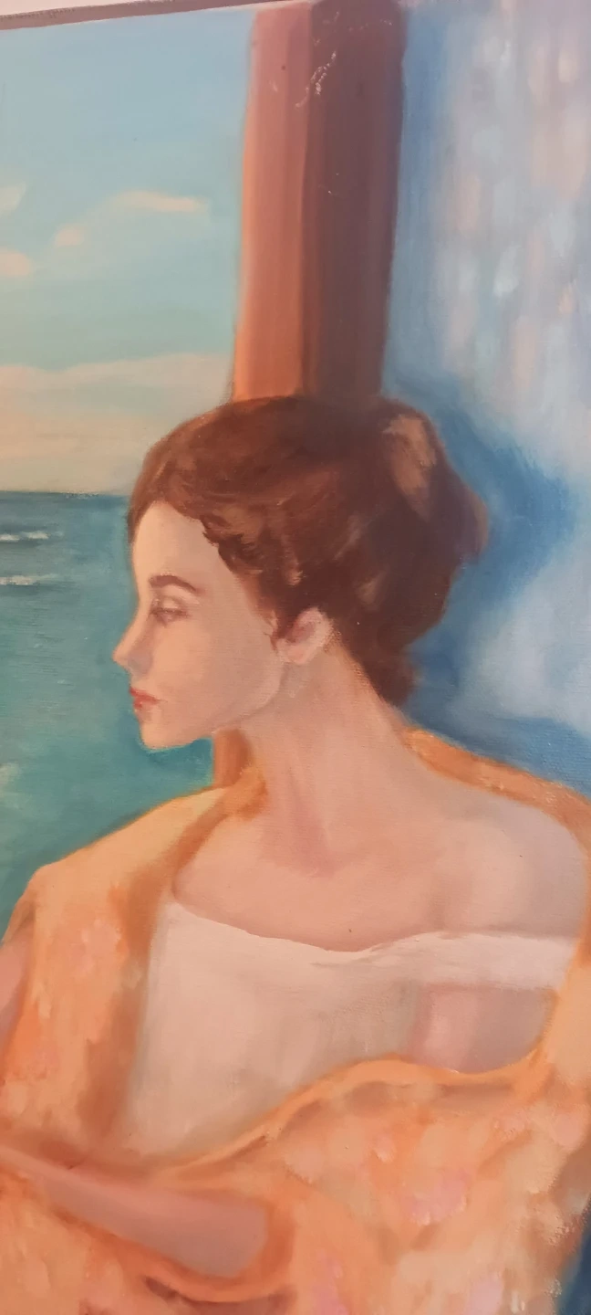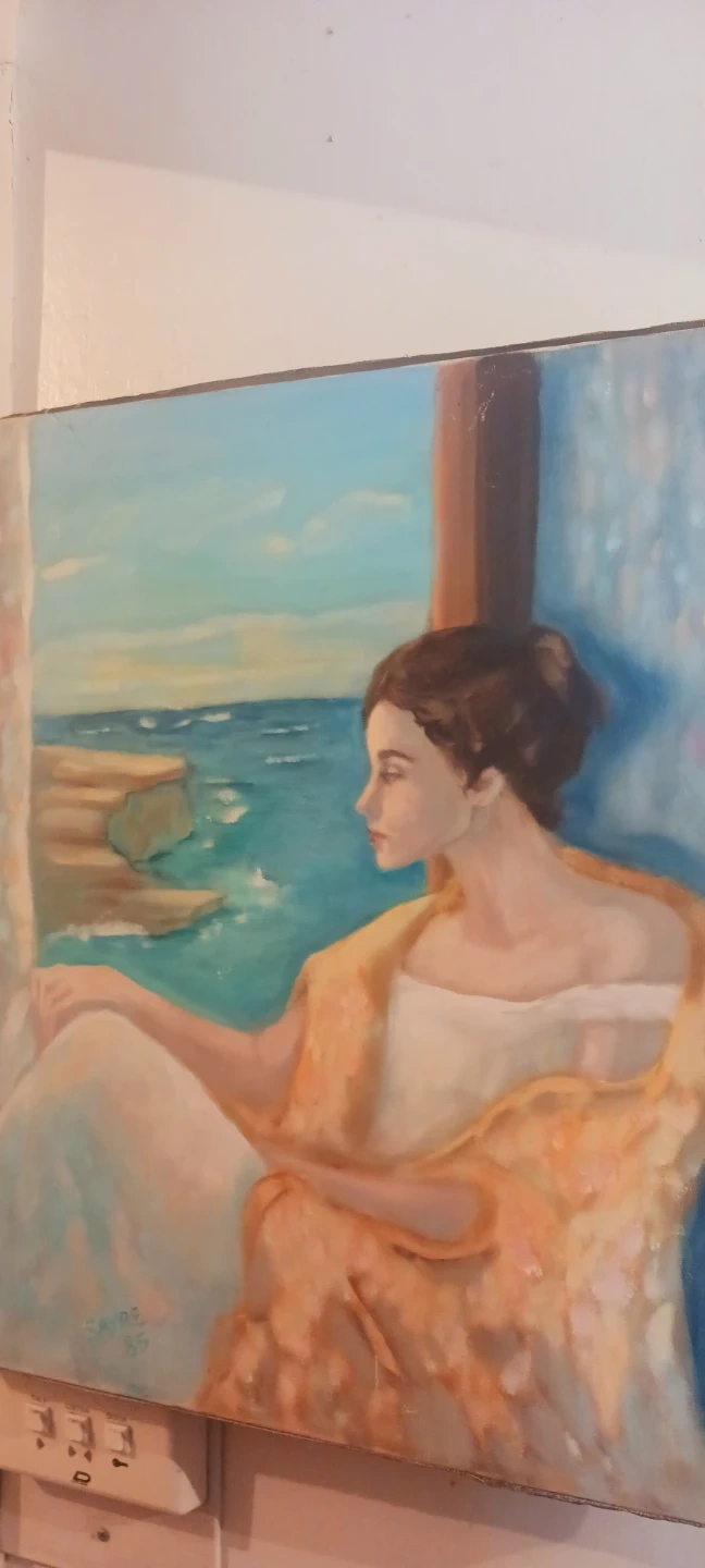 Original oil painting depicting a woman looking out at the ocean. Signed 'Sayre '85'. Artwork is on canvas. This piece would make a beautiful addition to any home. It is not framed, selling as is. 20"×18". Excellent condition. ALL MY PRICES ARE NEGOTIABLE !!