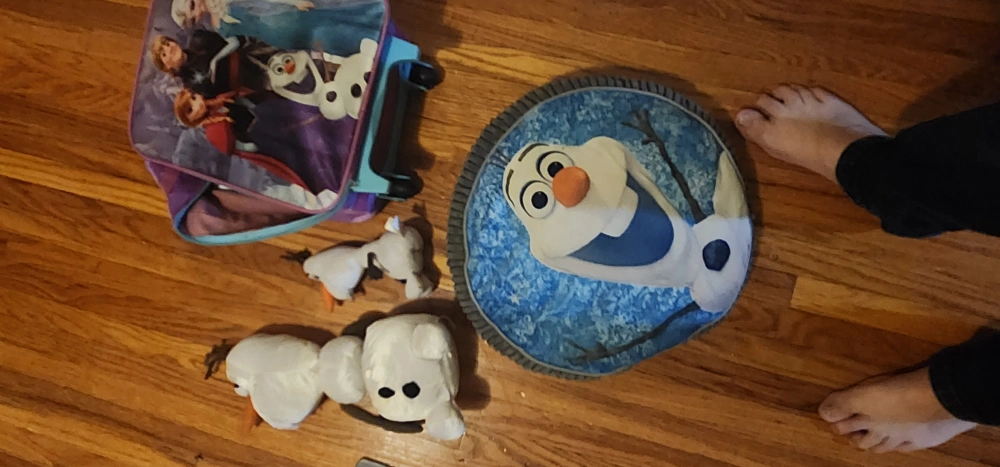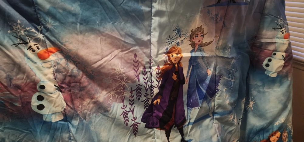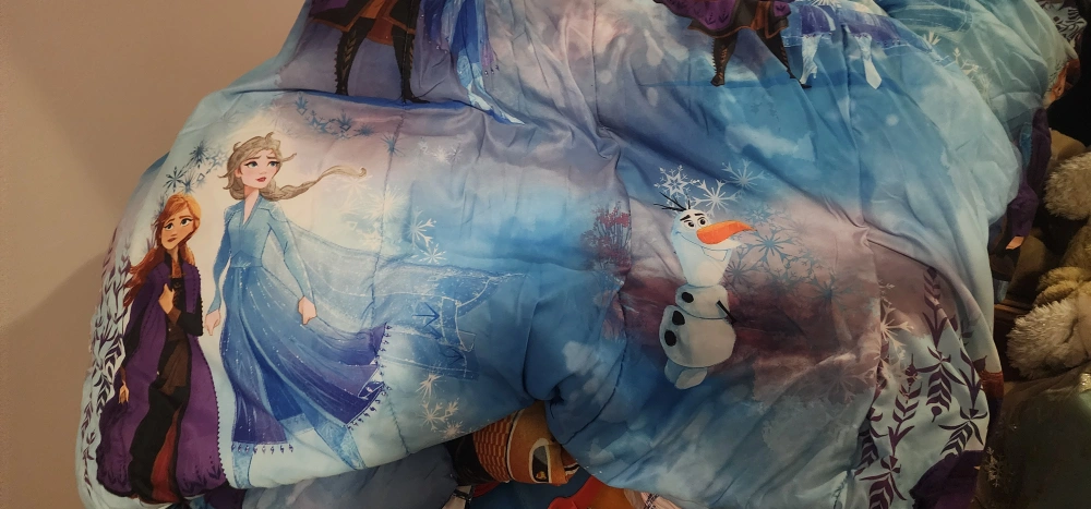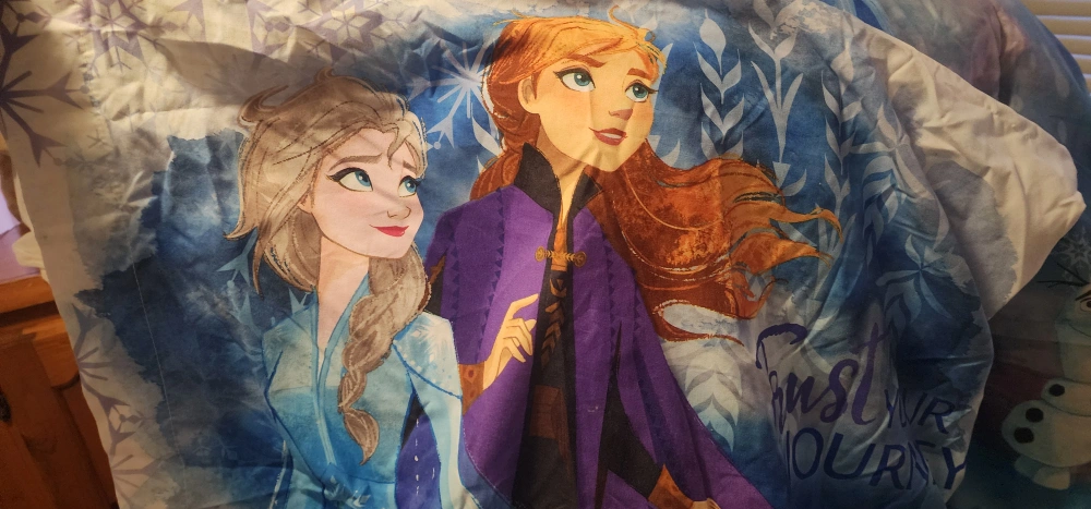 Selling a Frozen 2 twin-sized comforter featuring Elsa and Anna, and curtains and luggage. along with a cute Olaf decorative pillow! Perfect for any Frozen fan's bedroom