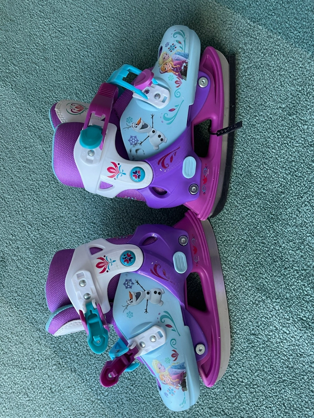 10These Frozen-themed ice skates are perfect for your little one! They're adjustable from size Y8 to Y11, so they can grow with your child. They're in great condition and ready for some fun on the ice! Frozen-Themed Adjustable Ice Skates for Kids Size Y8-Y11 20 cad
