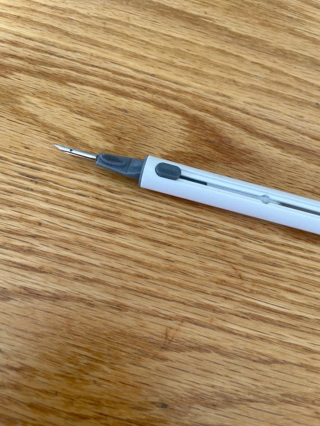 This handy cleaning pen is designed for electronics. It features a soft flocked sponge tip for cleaning screens and surfaces. It also has a small metal tip for getting into tight crevices and a brush for dusting. Great for cleaning earbuds, phones, and computer keyboards!
