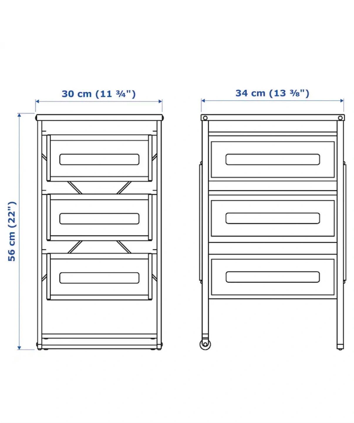 IKEA LENNART Drawer unit, White Metal 3-Drawer Organizer