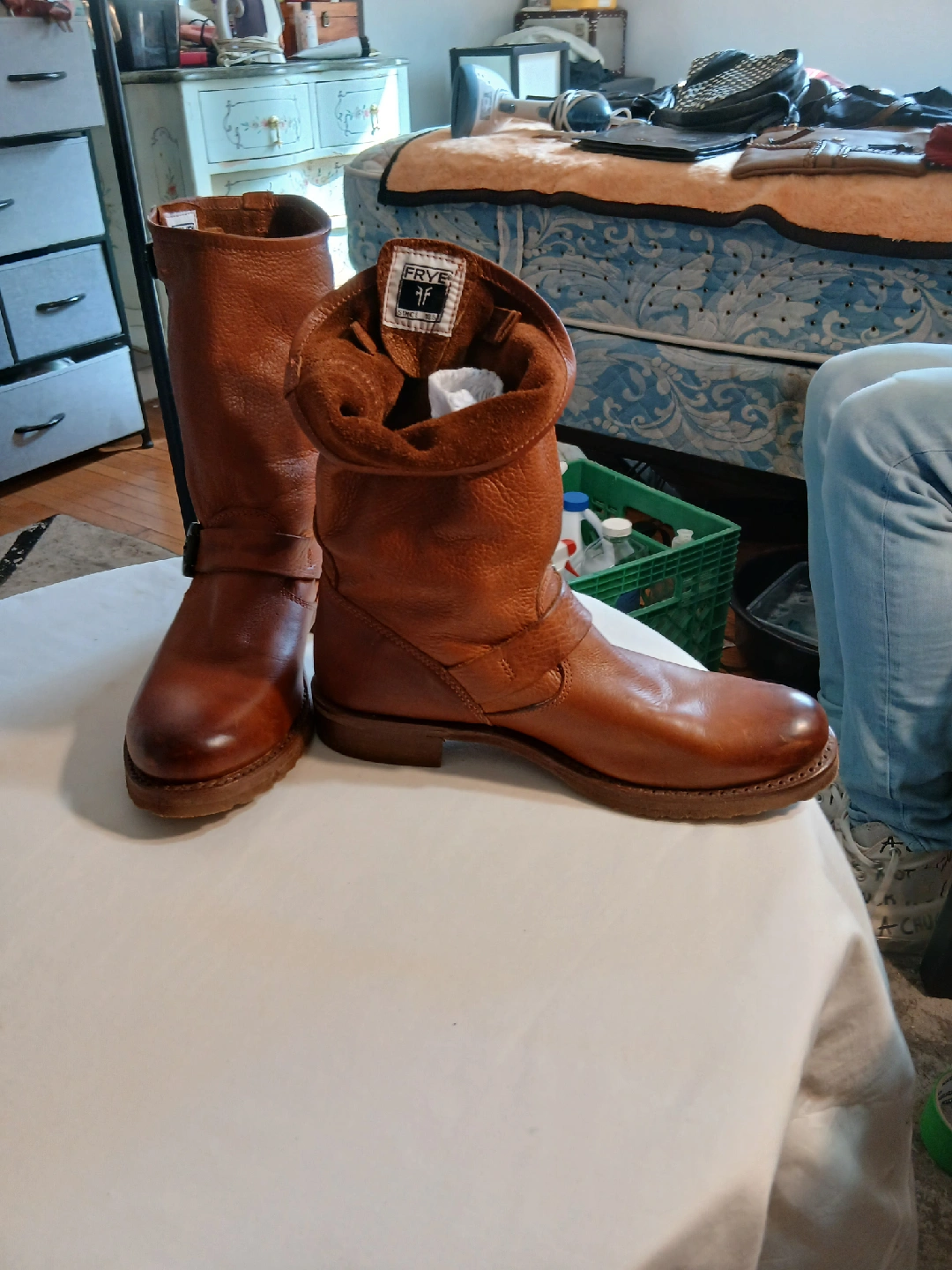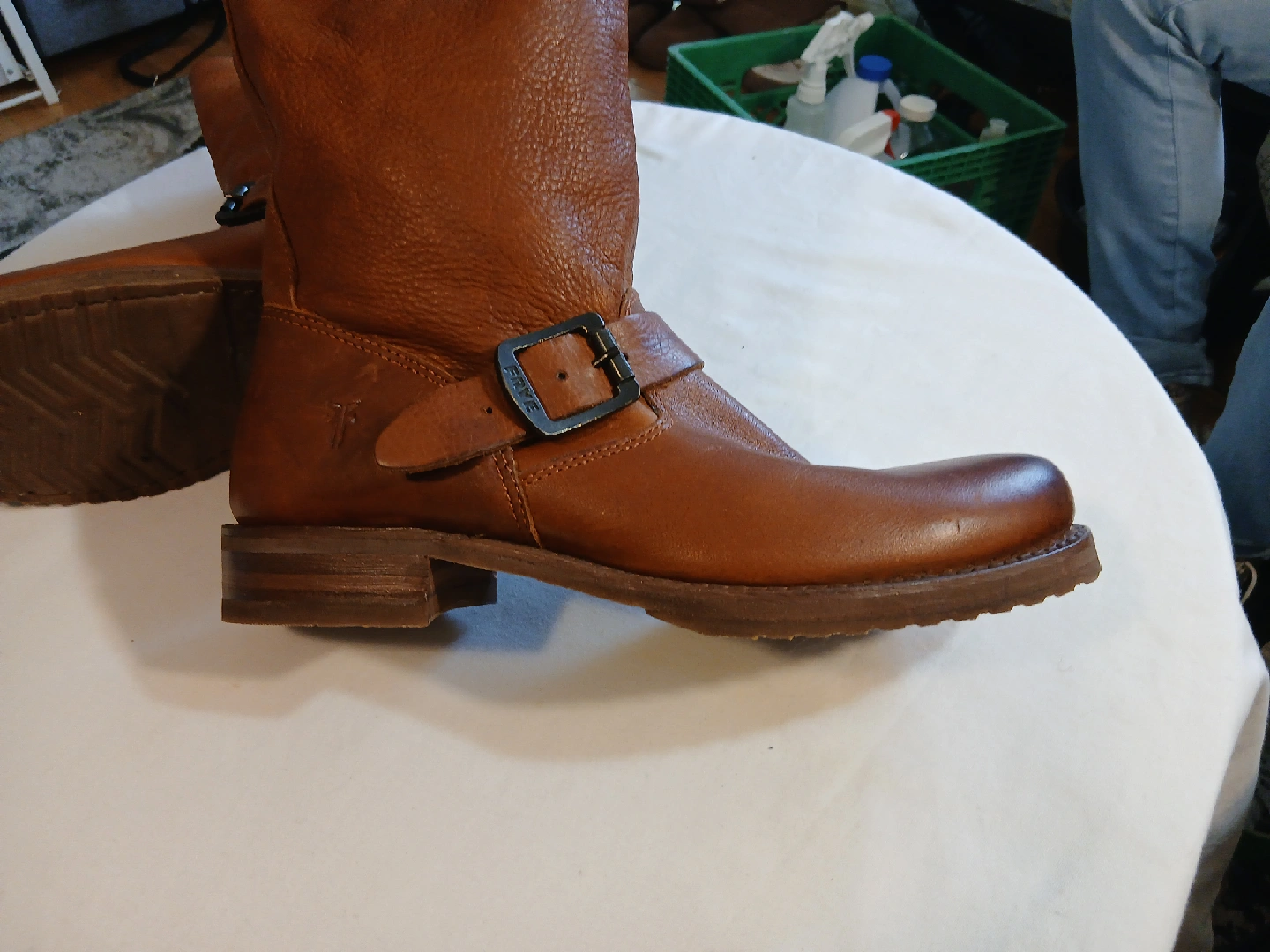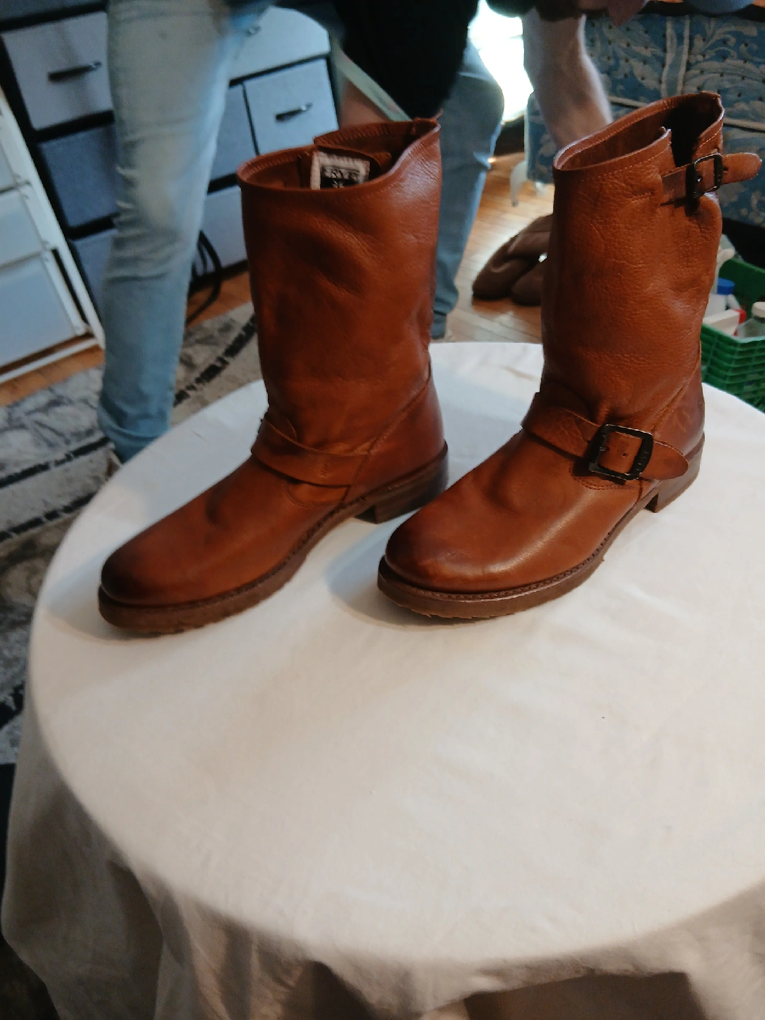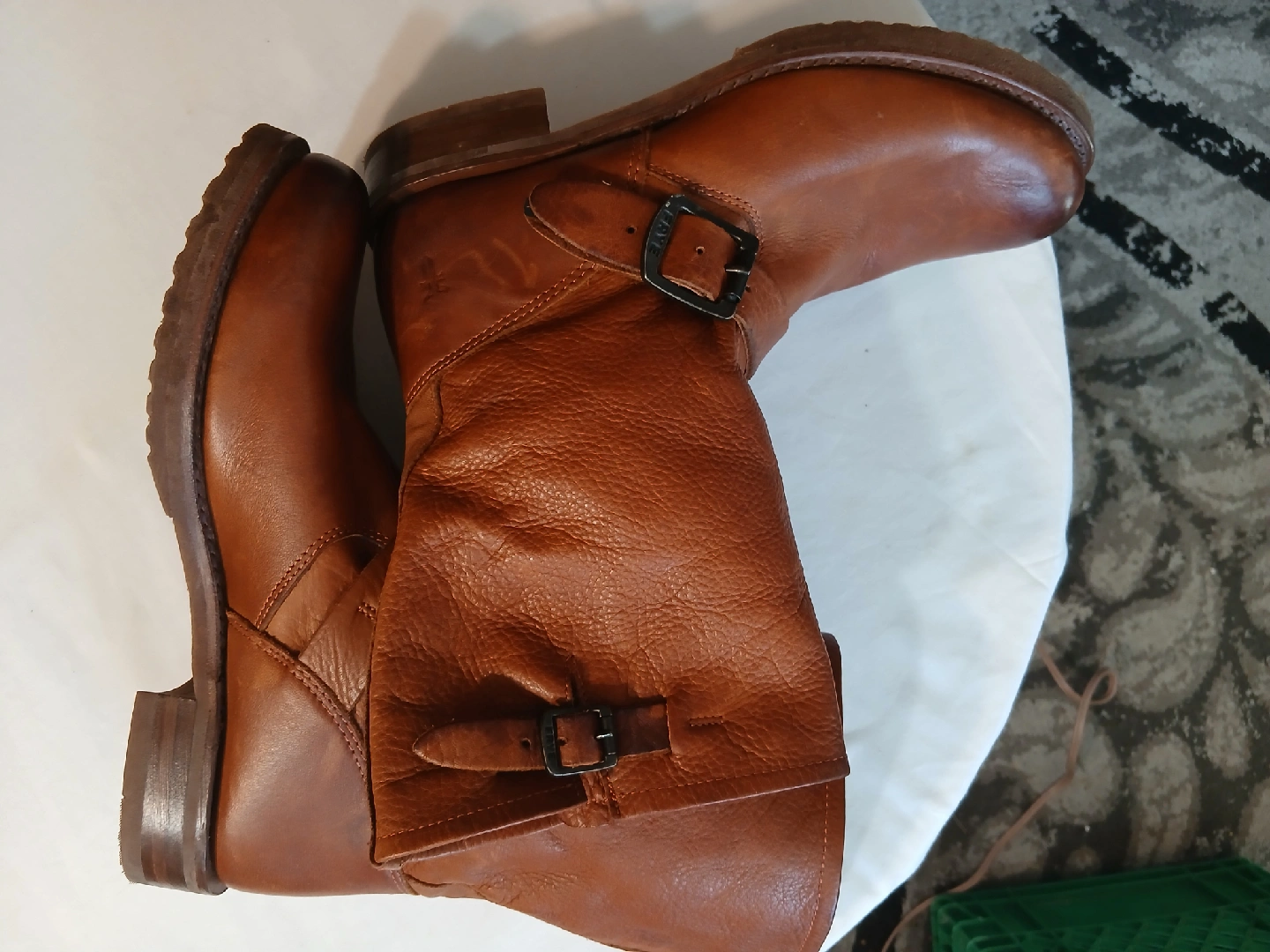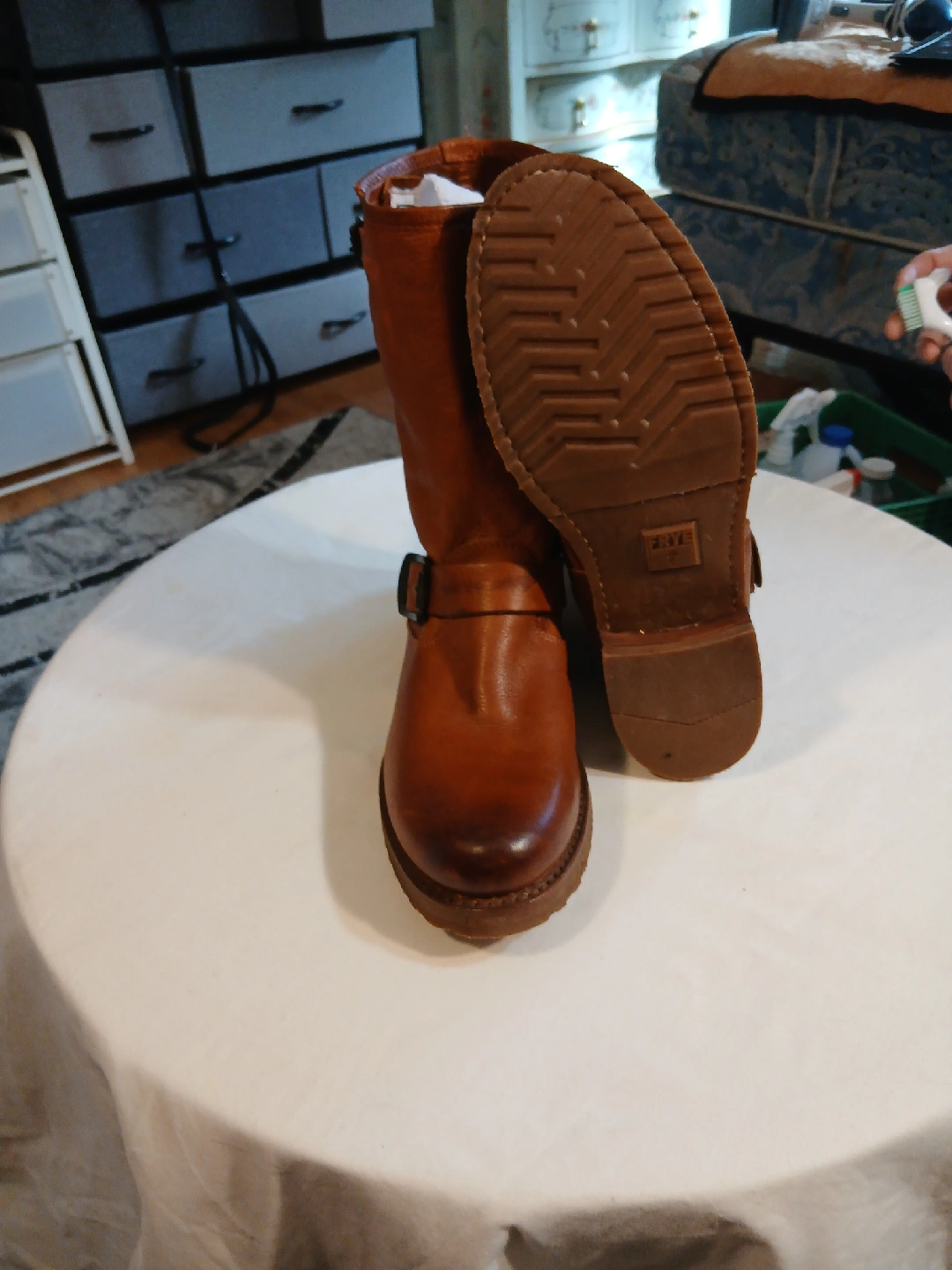 70These are a pair of Frye brown women leather motorcycle boots. They are in good condition and ready for a new home! Perfect for adding a bit of edge to your style