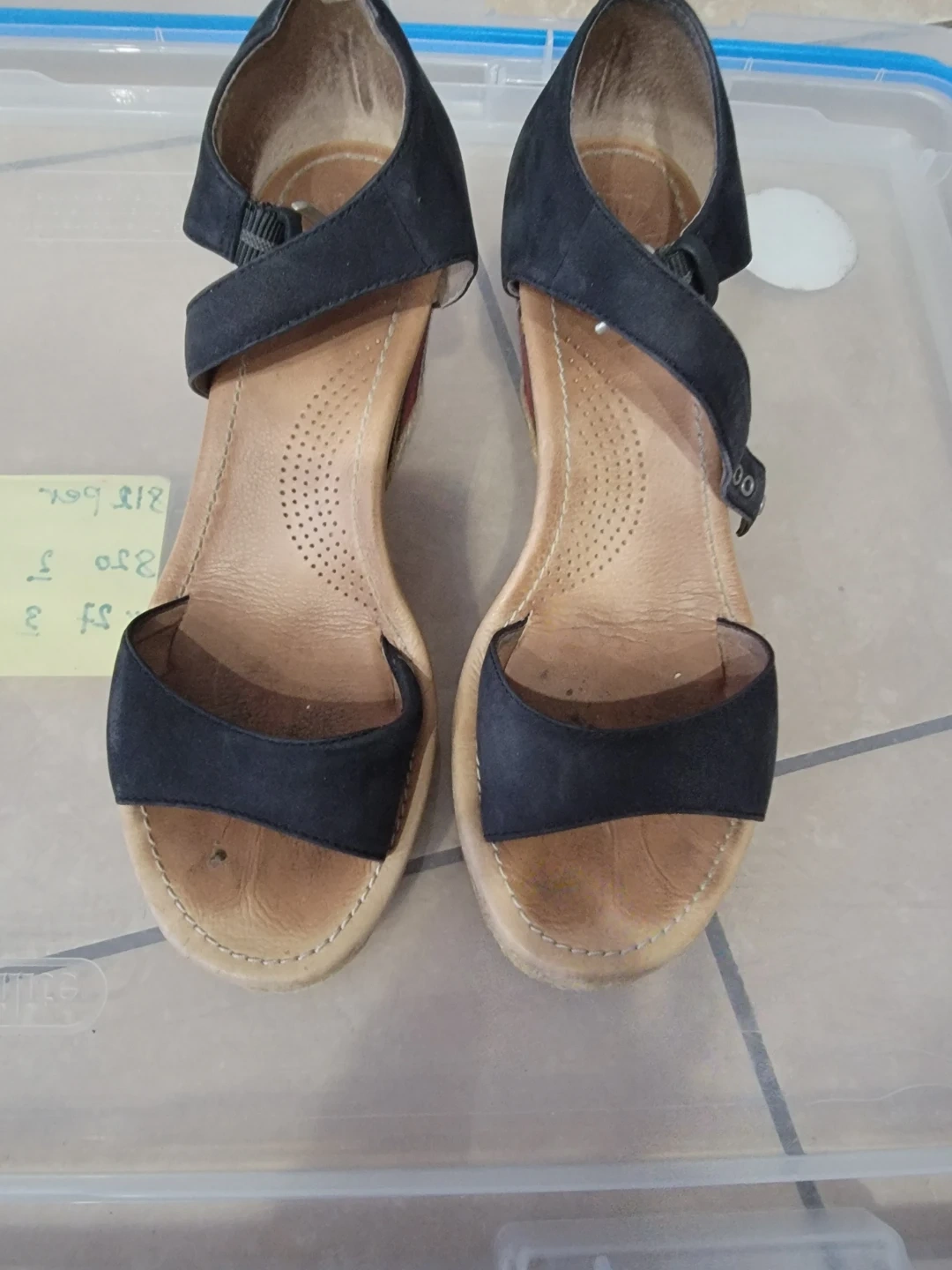 Black suede wedge sandals with a colourful striped espadrille wedge heel. They feature adjustable ankle straps and a comfortable cushioned footbed. Perfect for adding a touch of flair to summer outfits!
