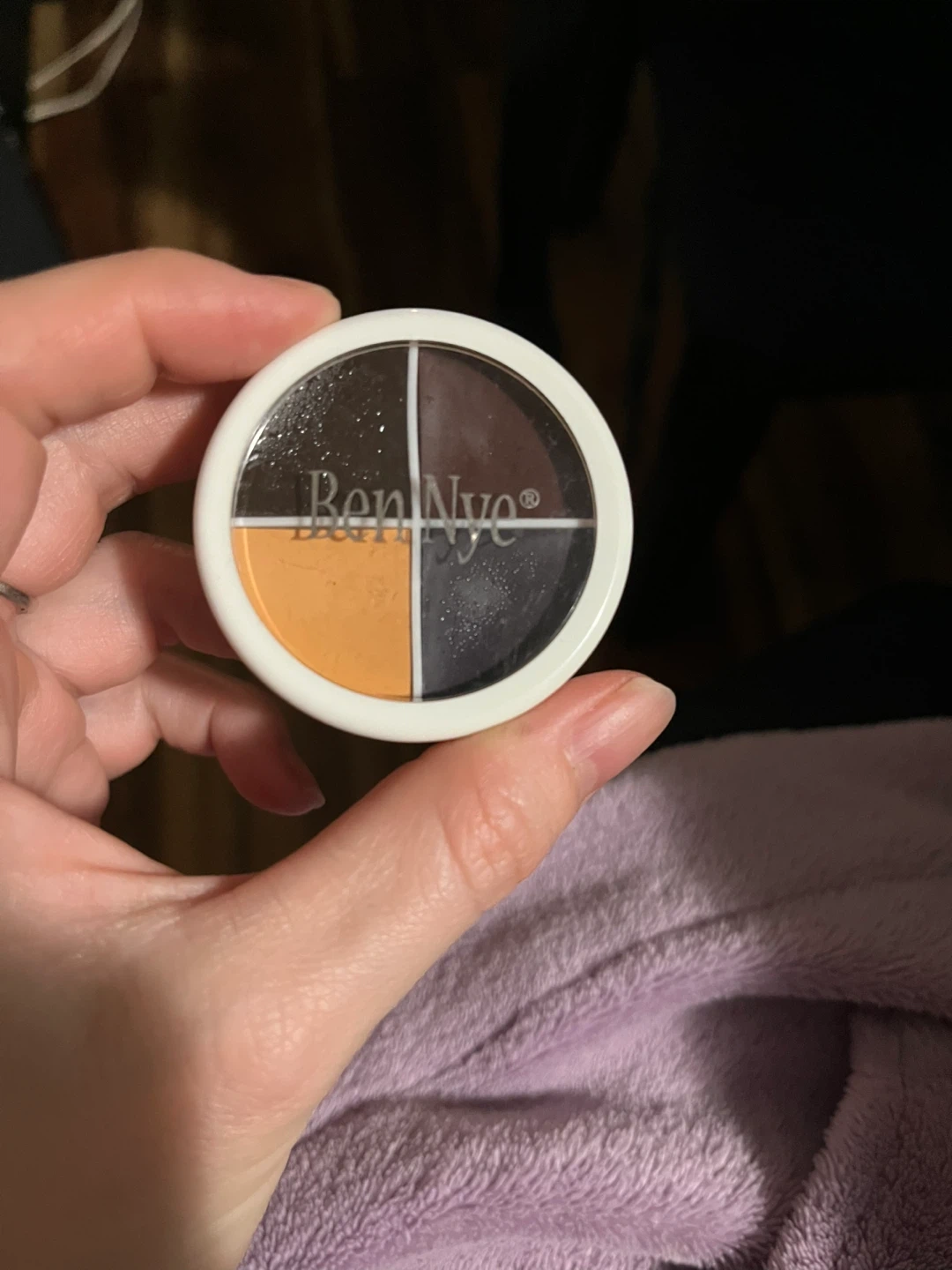 This Ben Nye F/X Color Wheel is for Old Character II. It contains four shades: yellow, brown, black, and orange for special effects.