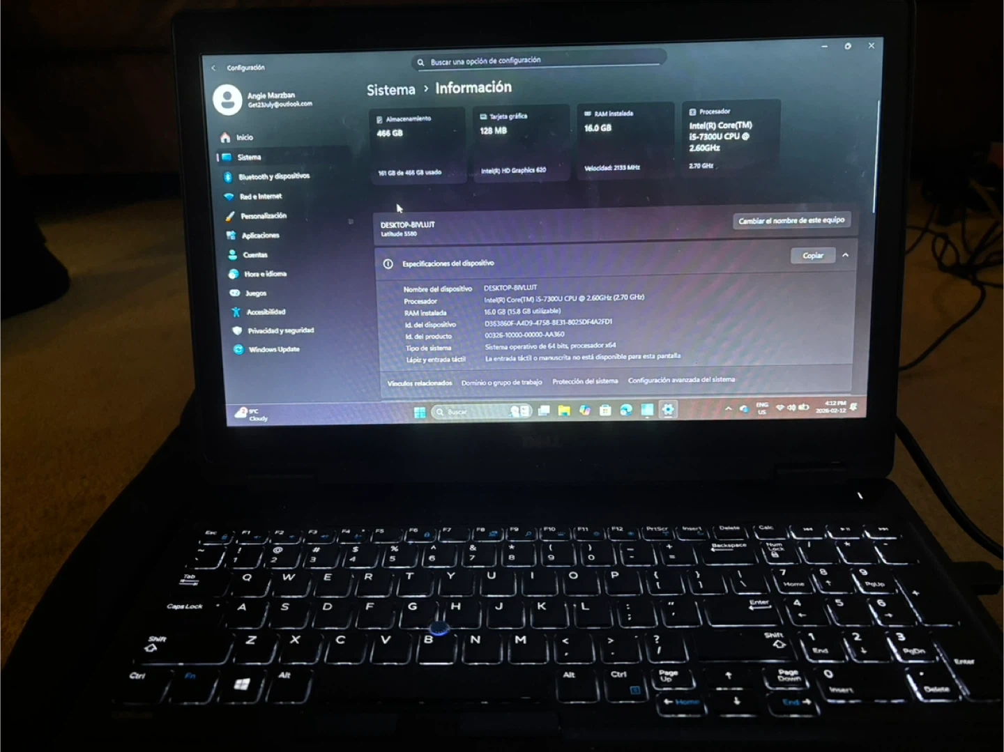 This is a Dell Latitude 5580 laptop with an Intel Core i5-7300U processor. It has 16 GB of RAM and a 466 GB hard drive. The graphics are Intel HD Graphics 620.