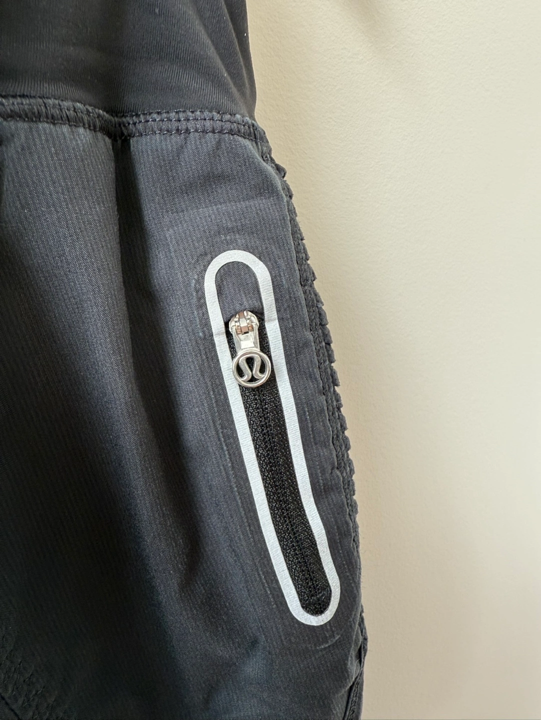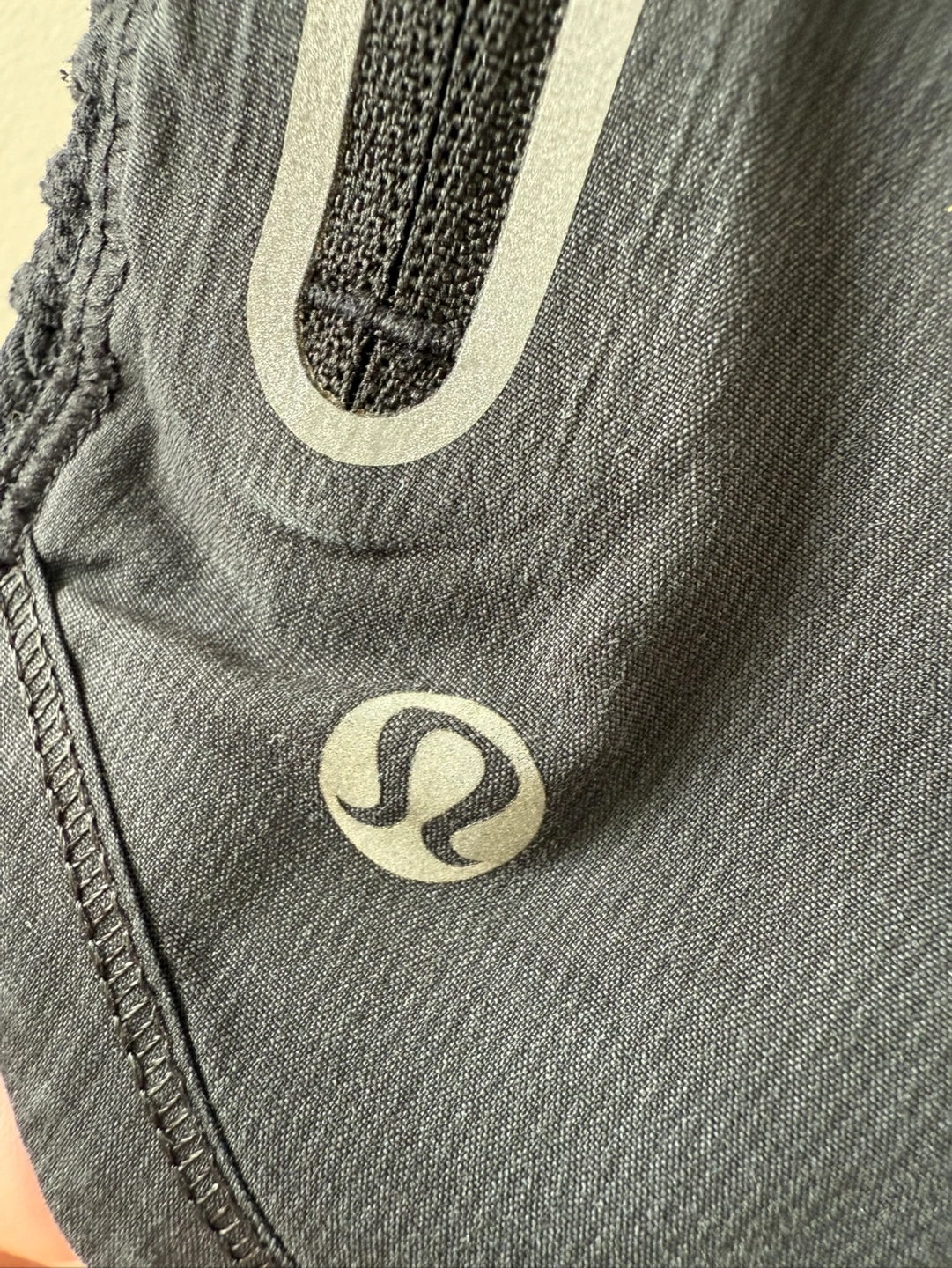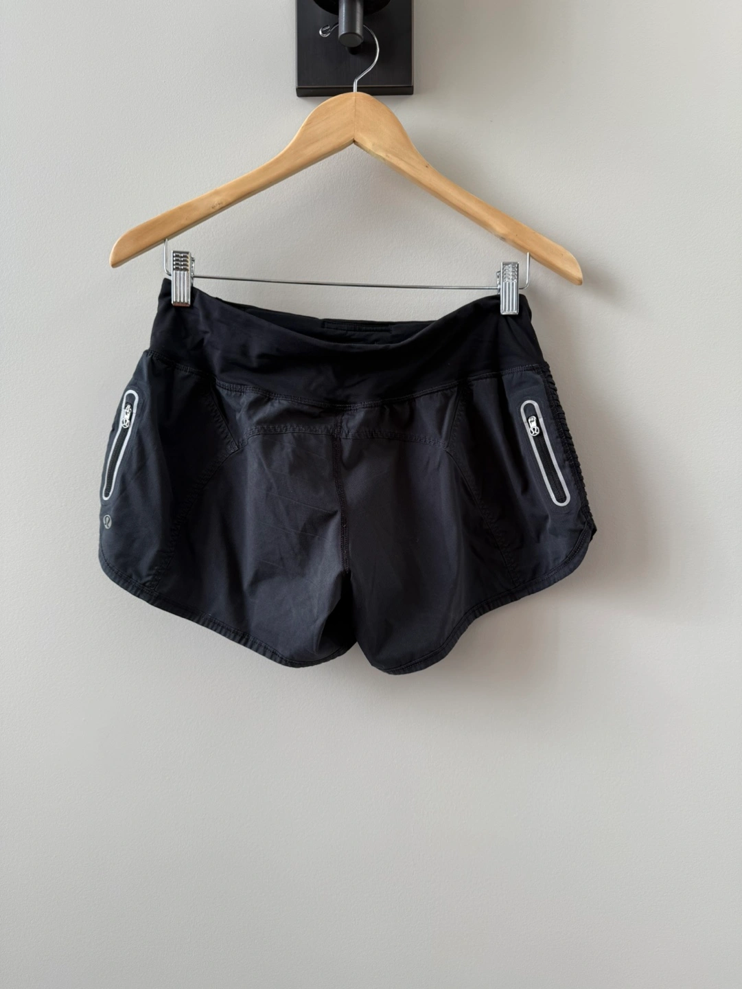Lululemon Bright at night running shorts. Black size 6 (for confirmed) great pre owned condition with slight fading due to age.