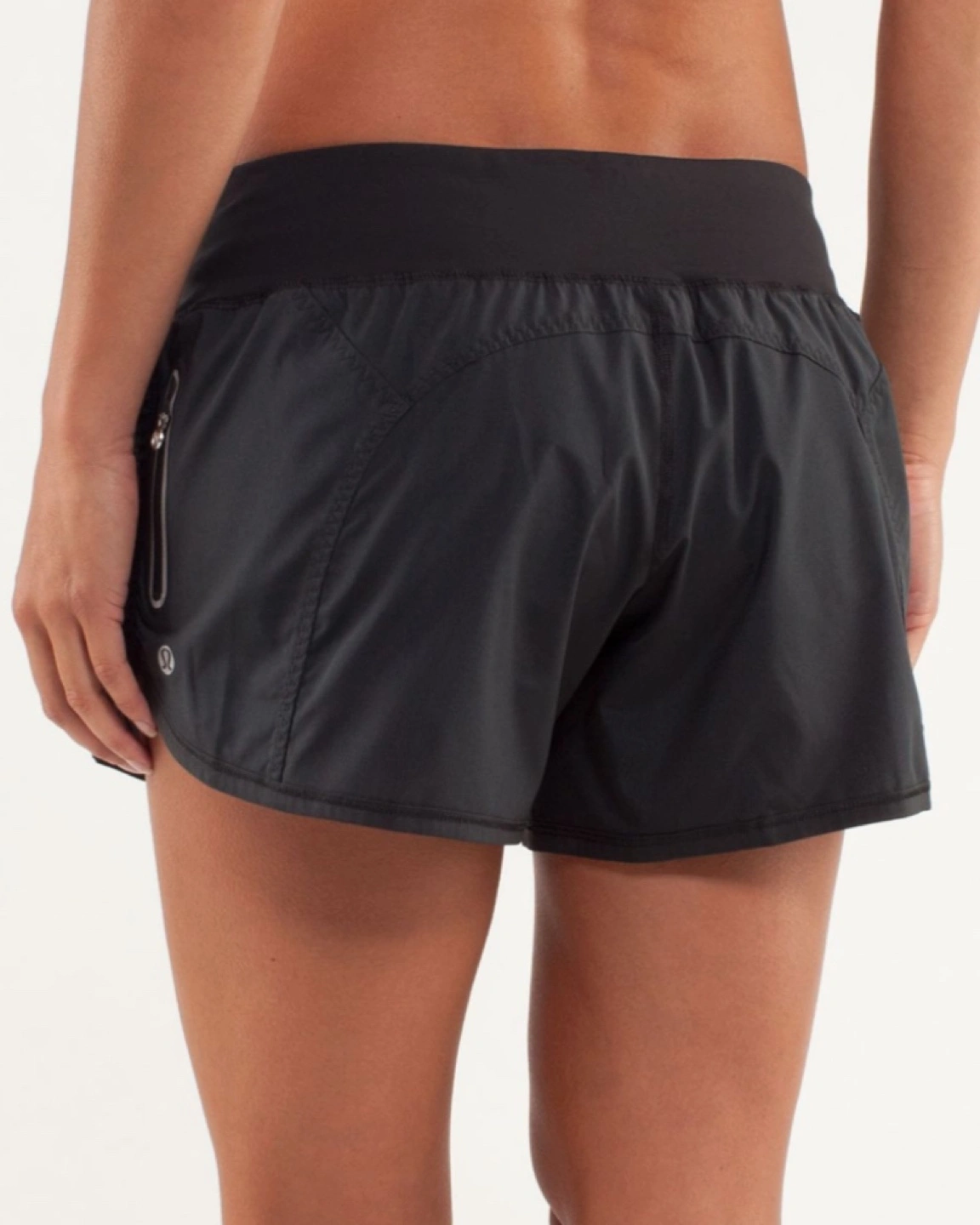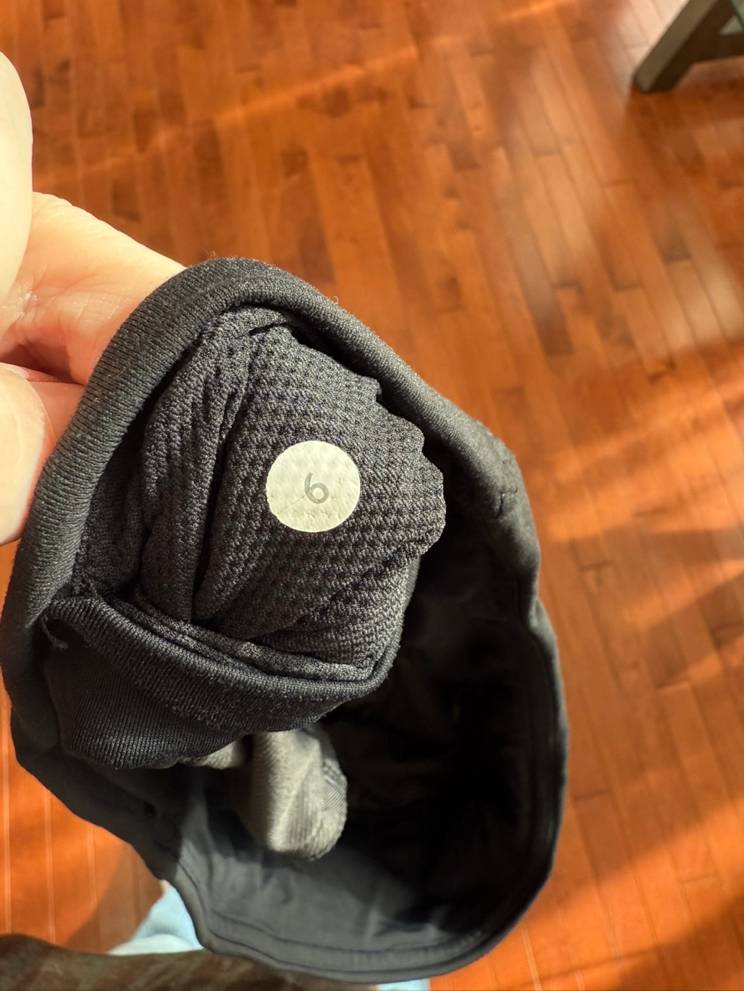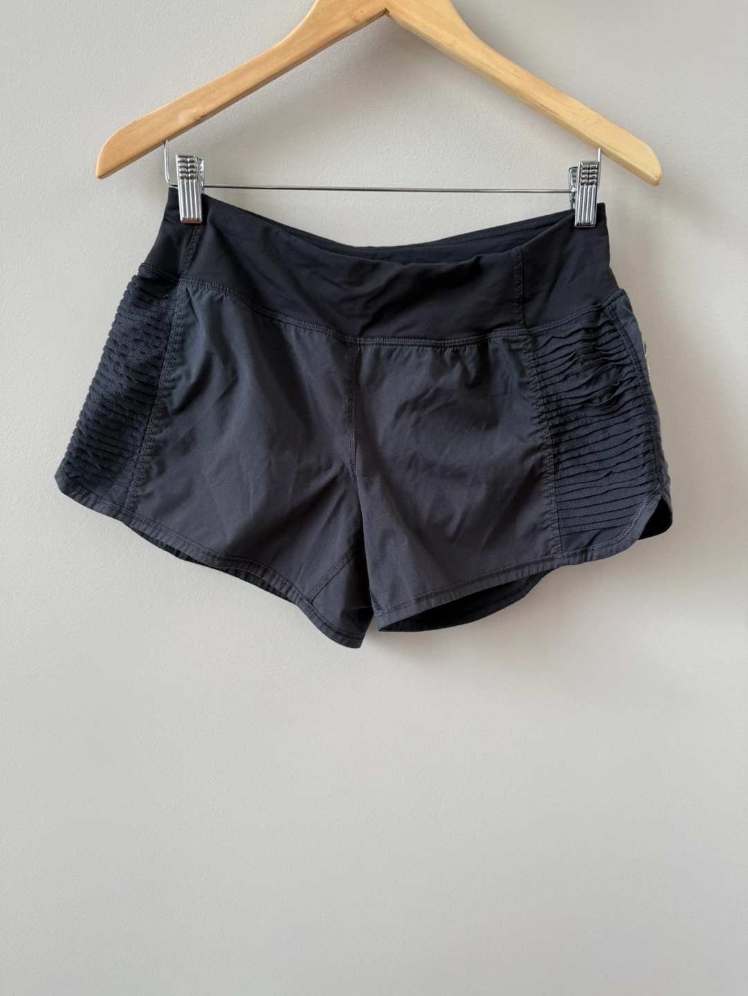 Lululemon Bright at night running shorts. Black size 6 (for confirmed) great pre owned condition with slight fading due to age.