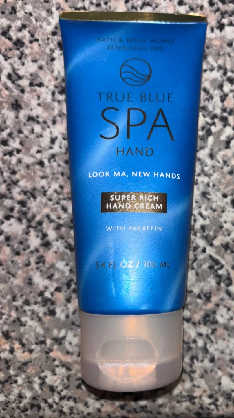 This is a super rich hand cream from Bath & Body Works True Blue Spa line. It's formulated with paraffin for extra moisture. The tube contains 3.4 fl oz or 100 ml.