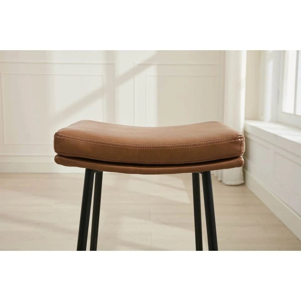 Set of 3 brand new vegan leather counter height saddle stools in a versatile camel colour. The price is for the set of 3.
