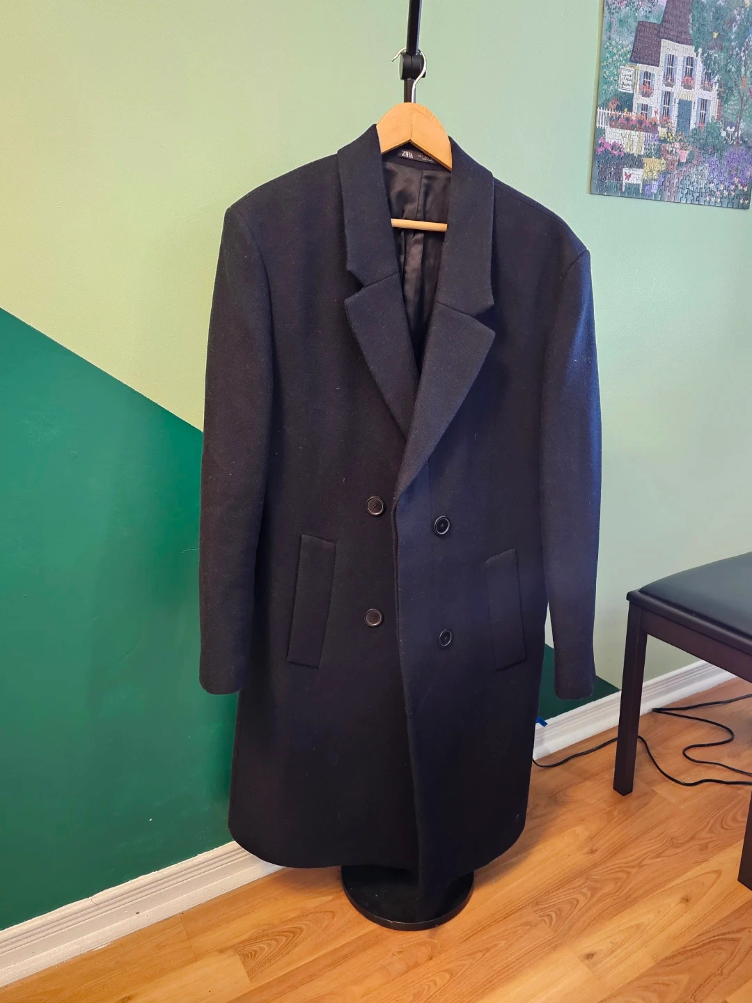 ZARA Double-Breasted Wool Blend Coat - Size L