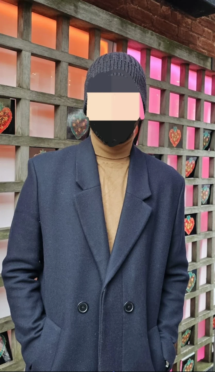 Sharp ZARA double-breasted coat. Wool blend fabric. Features classic lapels and a comfortable fit. Made in Morocco.