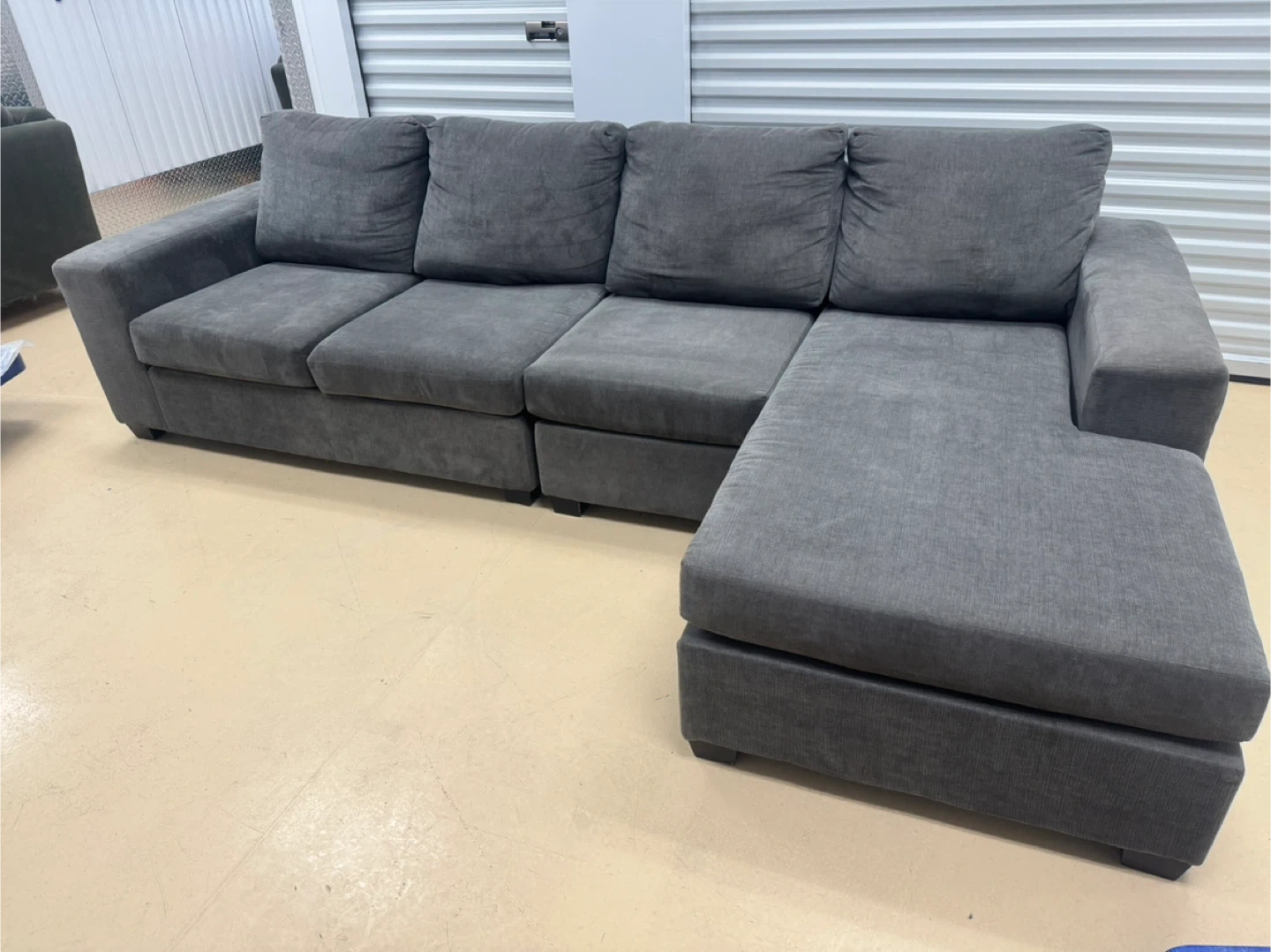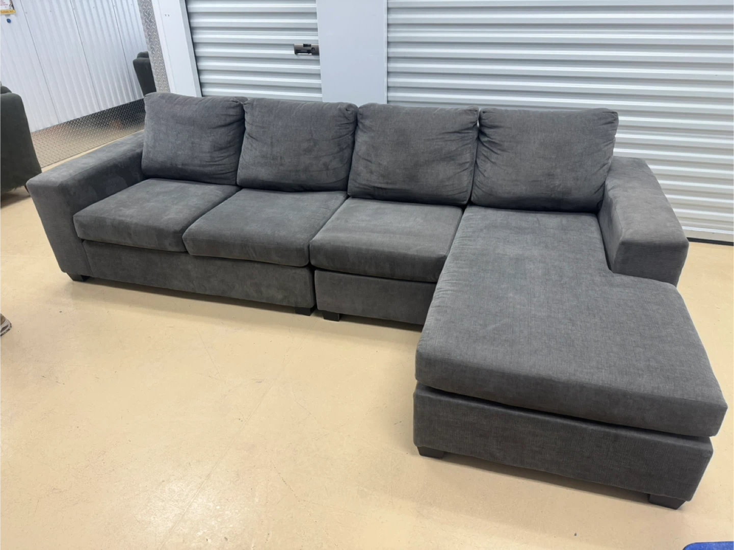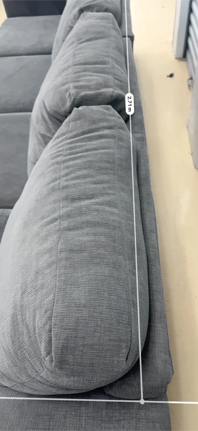 Selling a comfy grey sectional sofa with a chaise lounge! It's in great shape and ready for a new living room. The sectional features a modern design with plush cushions, perfect for lounging and relaxing. It would be a great addition to any home!home delivery available