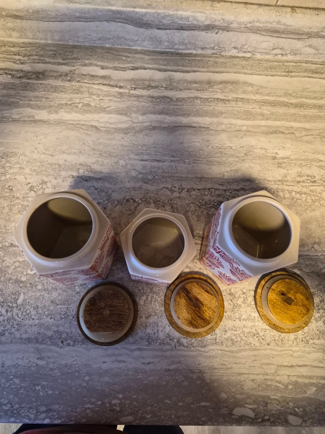 Set of 3 Ceramic Canisters with Wooden Lids