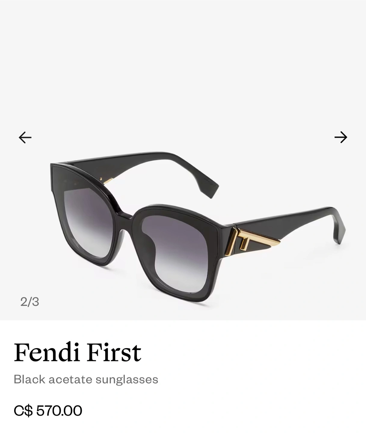 Buy & SellFendi First Black SunglassesFendi First Black Sunglasses$100Selling a pair of Fendi First black acetate sunglasses! They have a stylish design and are in great condition. Retails for $570.00.ConditionLike newBrandFendiWHERE TO MEETCheck LocationView MapSELLERverifiedAnaEntertainment District12212 reviews2 chats·4 favorites·71 viewsSEND CHAT TO SELLERHi Ana! I’m interested in your listing.Hi Ana! I’m interested in your listing.Get the Karrot app to chatSign In to chat