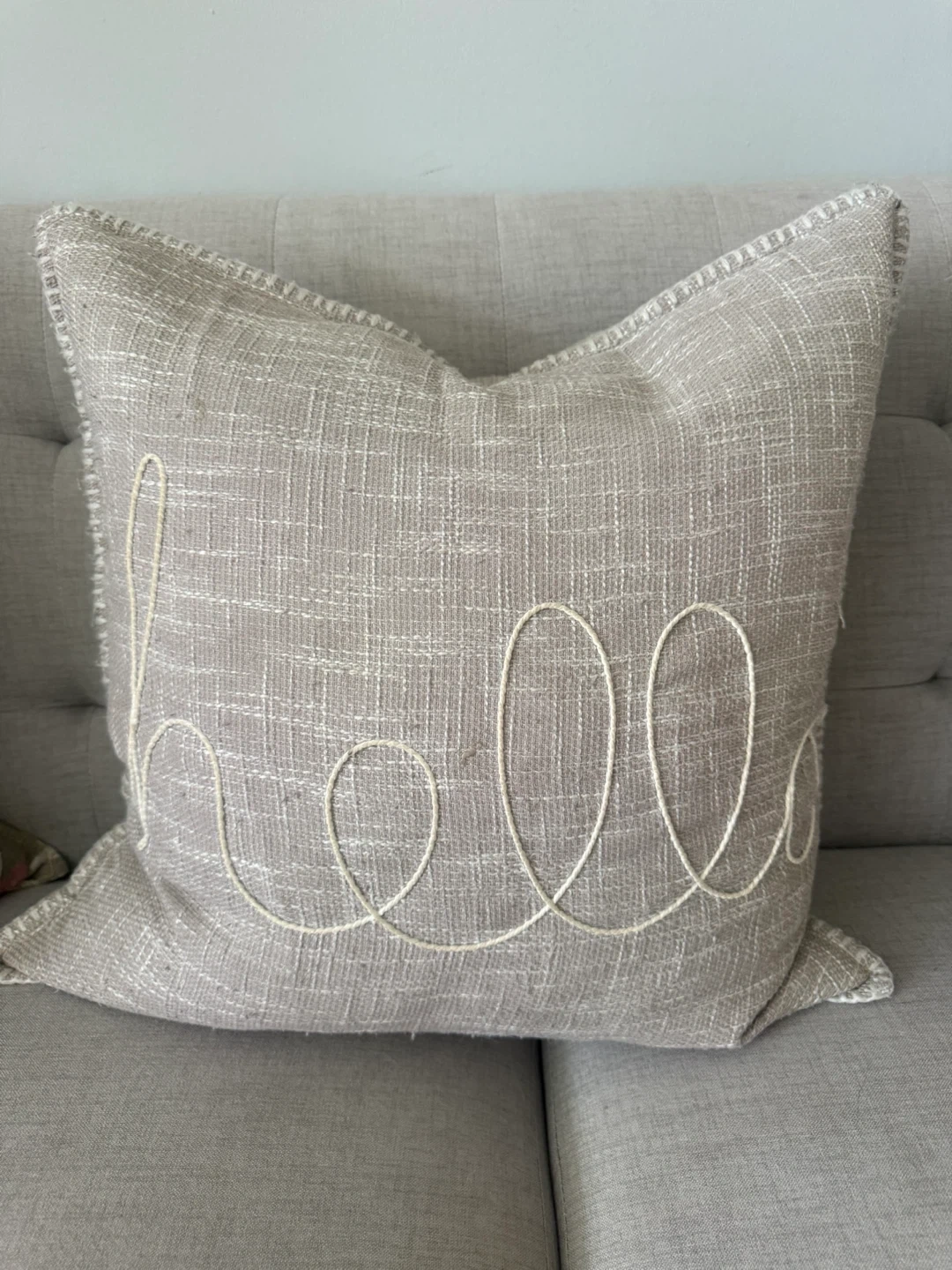 This set includes two decorative throw pillows, one with a textured 'hello' design and another with a floral pattern. It also comes with a cozy, plush throw blanket in a mauve shade. Material is soft fabric.