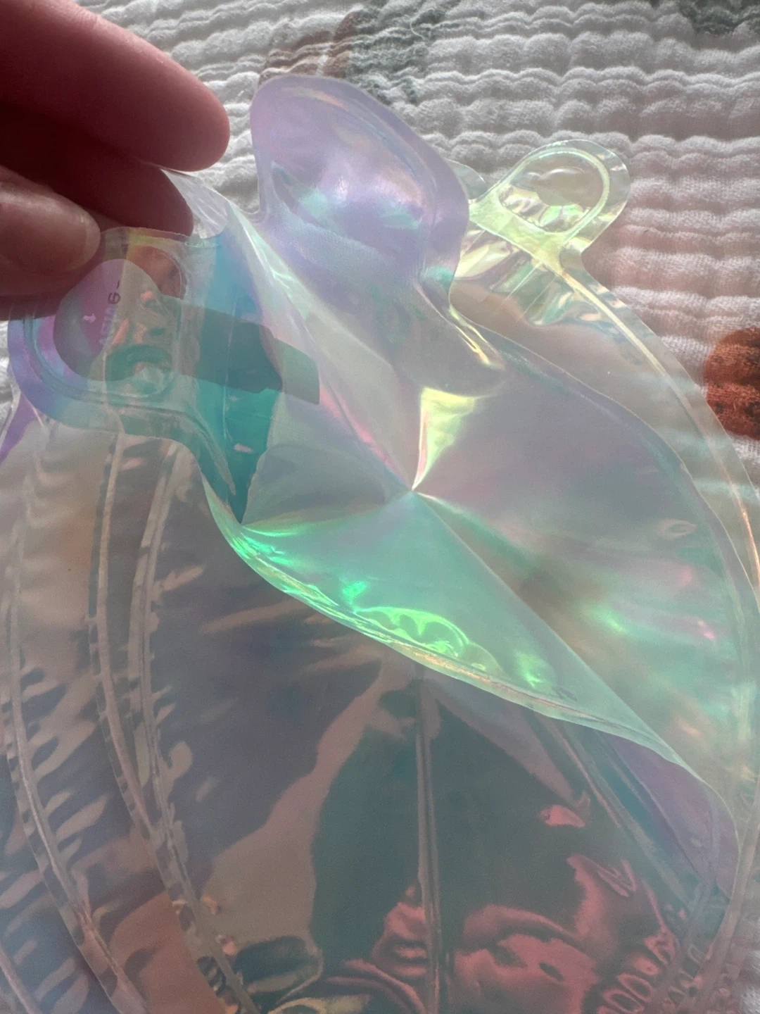 A set of five free iridescent balloons. These are cute and fun for small decorating projects. They have a one way valve style, easy to blow up with a pump and ball inflation style attachment.