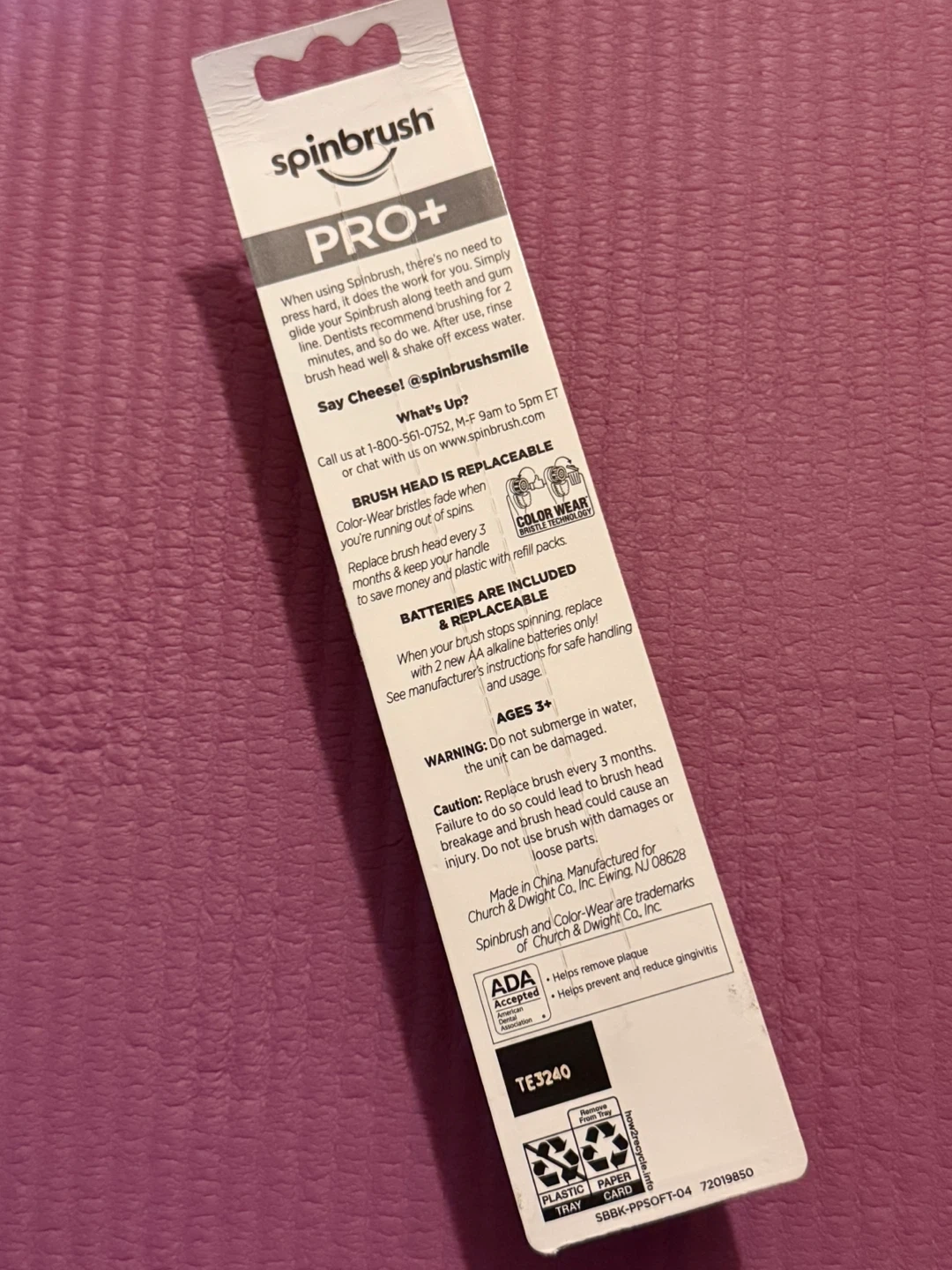 [✨Brand New✨]This Spinbrush PRO+ electric toothbrush features dual brush head action for effective cleaning. It's designed to remove 100% more plaque than a manual brush. Brush heads are replaceable, and the unit requires 2 AA alkaline batteries