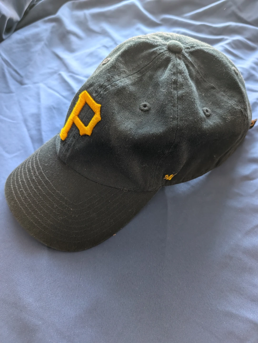This is a Pittsburgh Pirates baseball cap with the iconic 'P' logo embroidered in yellow. It's a classic dad hat style. Made of cotton.