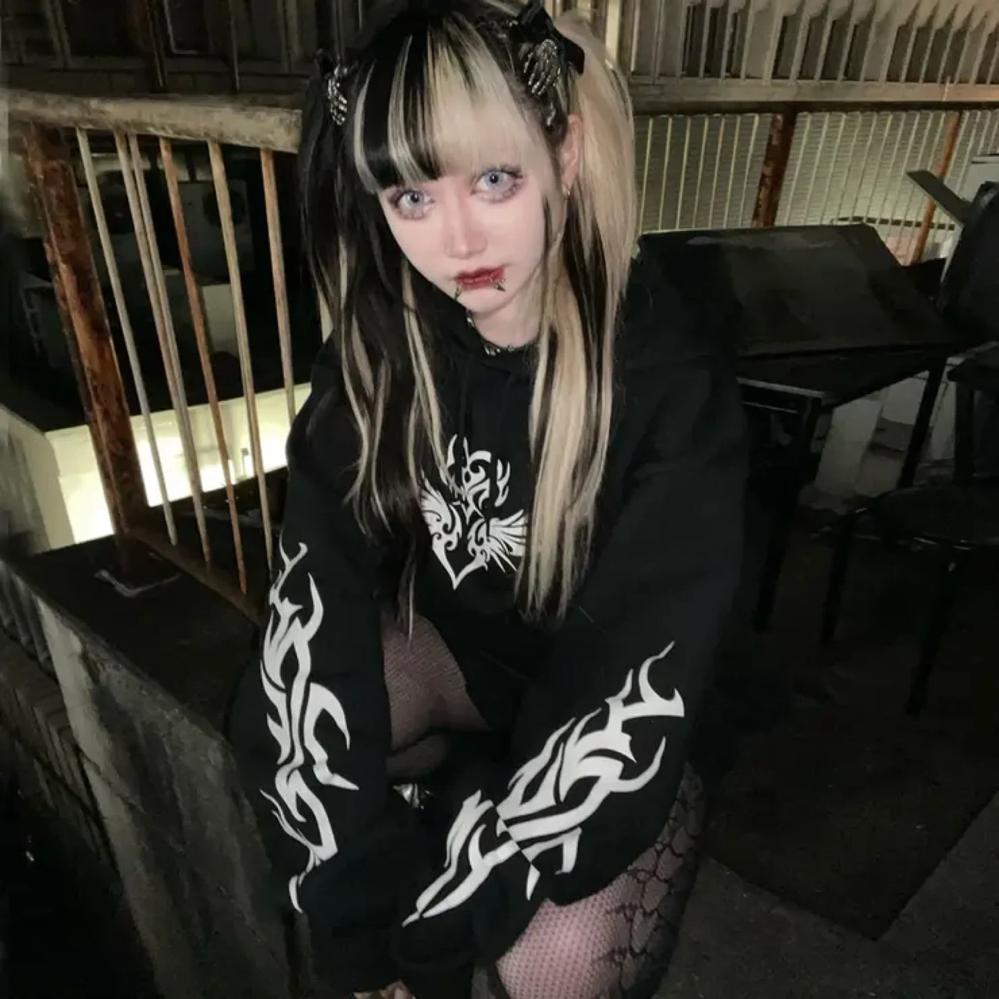 This black hoodie features a striking white graphic of a winged heart on the front and tribal-style designs on the sleeves. It's a comfortable and stylish pullover with a hood. Perfect for cooler weather or making a statement!