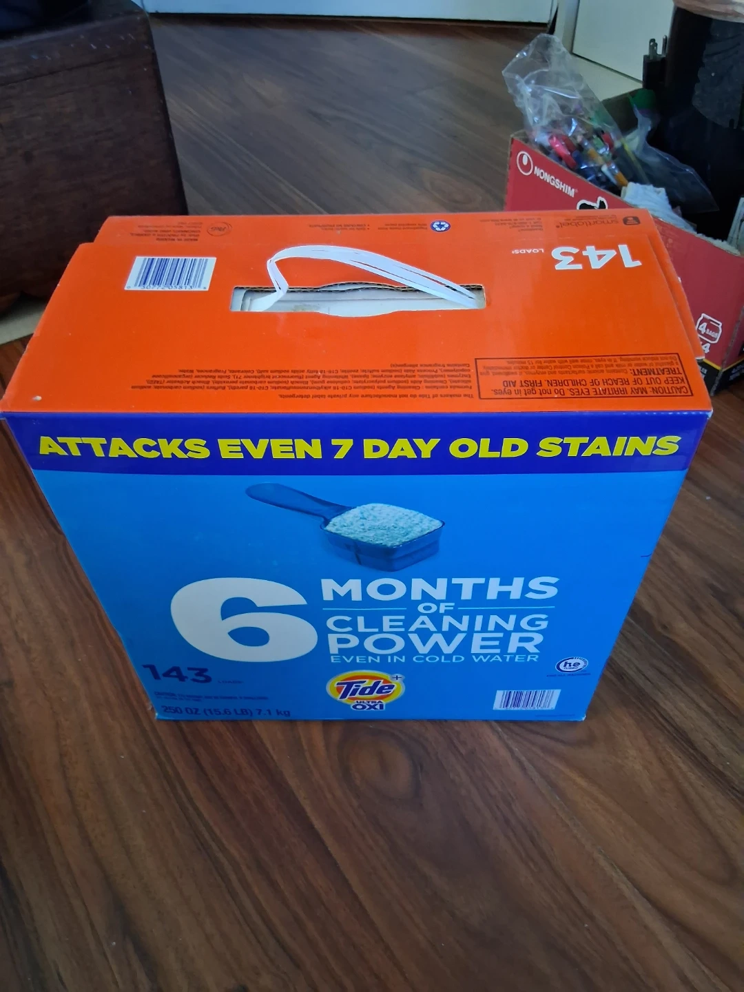 This Tide Ultra Oxi laundry detergent offers 143 loads of cleaning power. It's designed to attack even 7-day old stains. The formula is effective in cold water. 250 oz size.