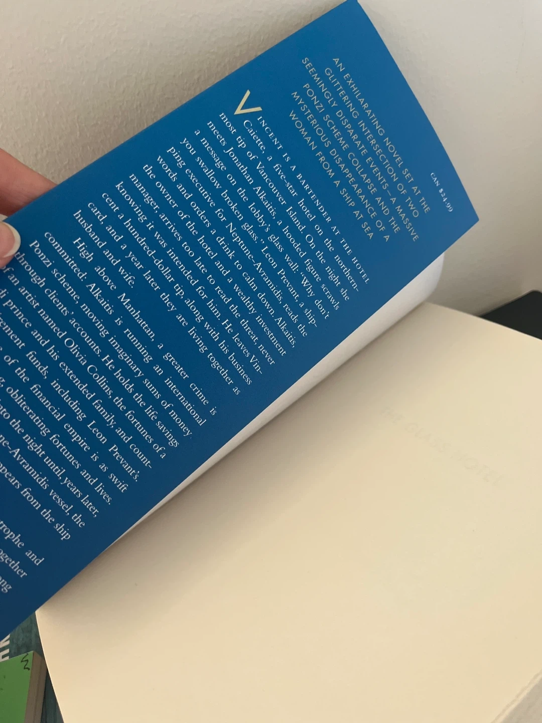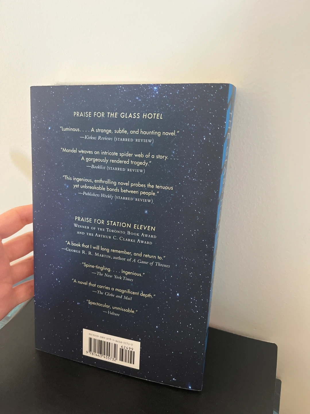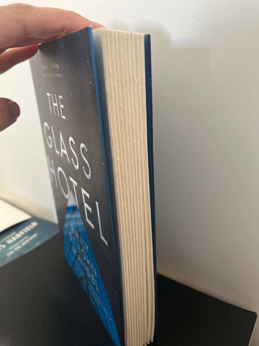 Selling a copy of "The Glass Hotel" by Emily St. John Mandel. It's a novel set at the intersection of two seemingly disparate events - a massive Ponzi scheme collapse and the mysterious disappearance of a woman from a ship.