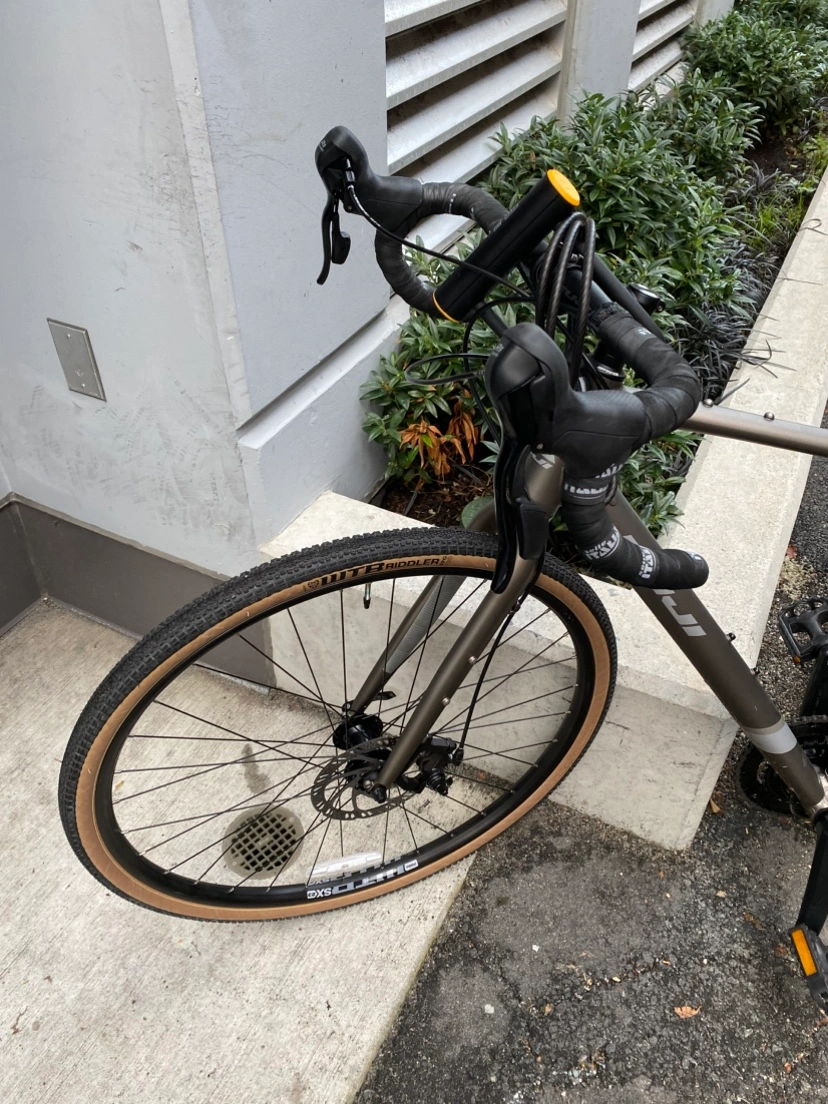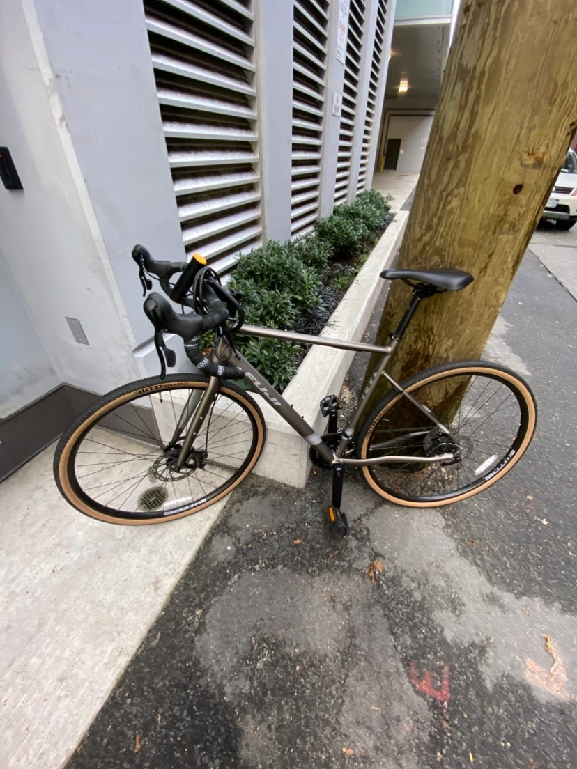 18Gravel bike with tan wall tires. Very Good condition. Giving locker and a helmet with it Bought 3 months ago and selling because I am leaving Canada