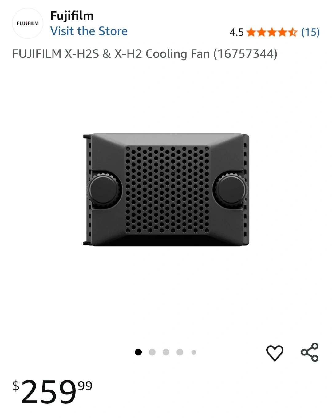 Selling a Fujifilm X-H2S & X-H2 Cooling Fan. Retails for $259.99+Tax. It's in great condition and ready to keep your camera cool during those long shoots!