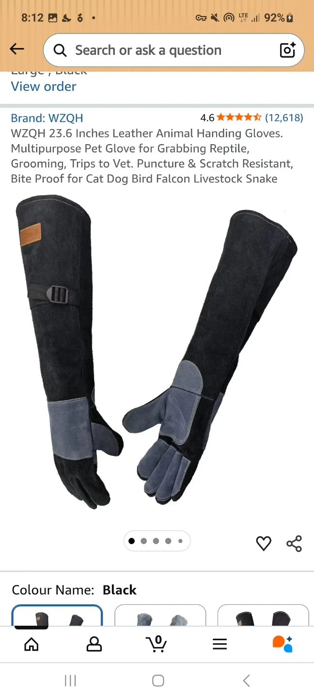 Selling 2 brand new pairs of WZQH 23.6 inches leather animal handling gloves. These multipurpose pet gloves are designed for grabbing reptiles, grooming, trips to the vet, and protecting against punctures and scratches.
