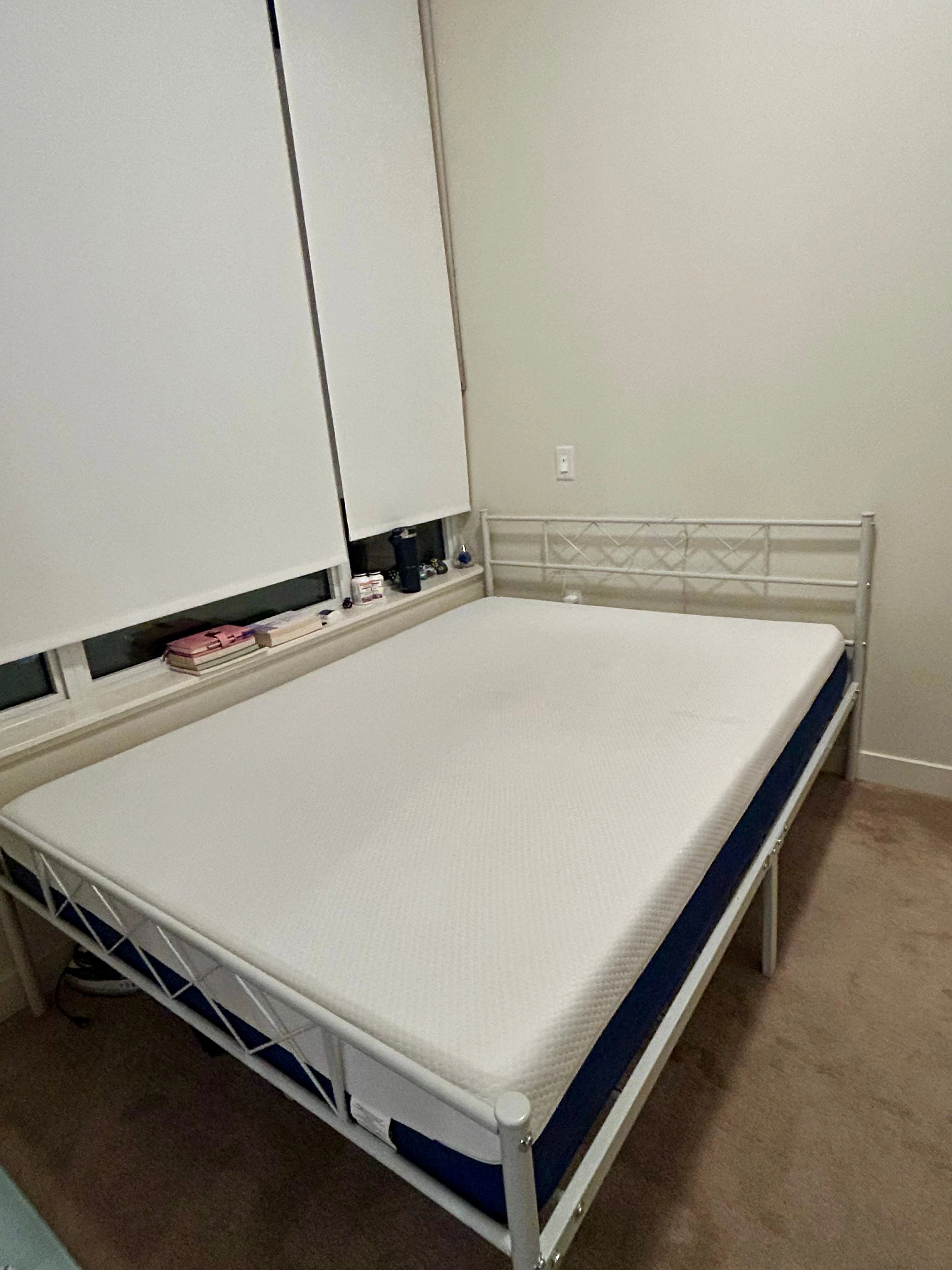 Selling my Yaheetech metal platform bed frame and Molblly 8-inch Gel Memory Foam Mattress as a set. Both have been used for about a year and are in good condition, from a smoke-free, pet-free home. 🛠 Bed Frame: • Full/Double size – sturdy metal platform design • Already assembled and includes all parts • Provides plenty of under-bed storage space • No box spring needed – just place the mattress on top 🛏 Mattress: • Gel-infused memory foam provides cool, comfortable sleep • Supportive and comfortable – great for everyday use • Always used with a fitted sheet and top sheet • Removable cover can be washed if you’d like to freshen it up Originally paid over $250 total, selling the bundle for $170. 📍Pickup at Metrotown (Burnaby) between Oct 28–30, or Oct 31 before 10 AM.