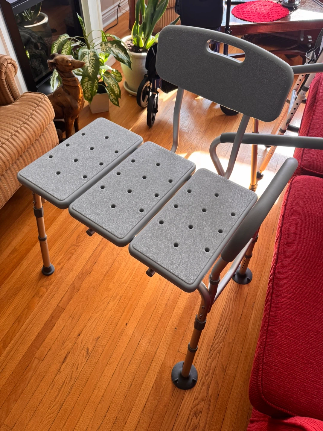 60Selling a shower bench with back, bedside rail(goes between mattress and box) and toilet mounted side rails. All cleaned and sanitized thoroughly. Was barely use for a month. Shower and bedside not used, open box purchase.