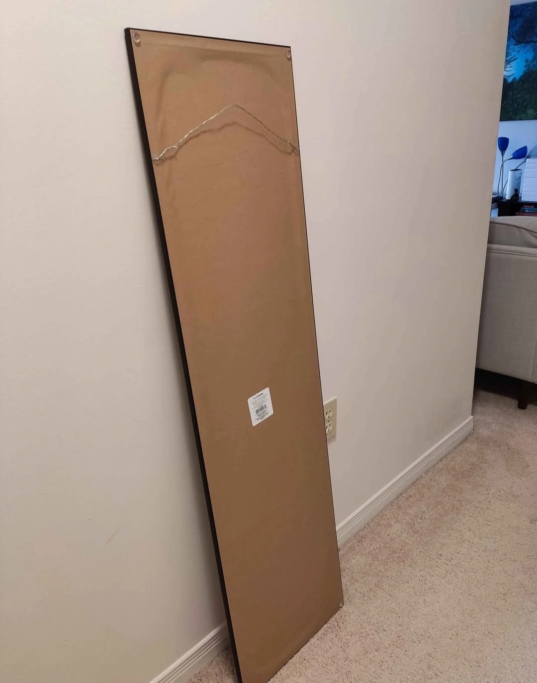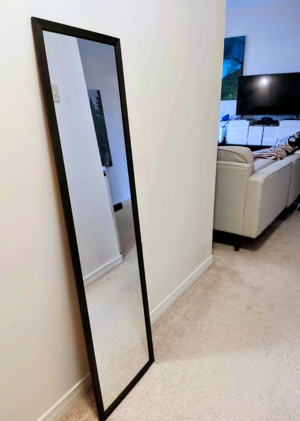 96Selling a full-length mirror with a sleek black frame. It's in great shape and ready to brighten up any room. Perfect for checking out your outfit or adding depth to your space!