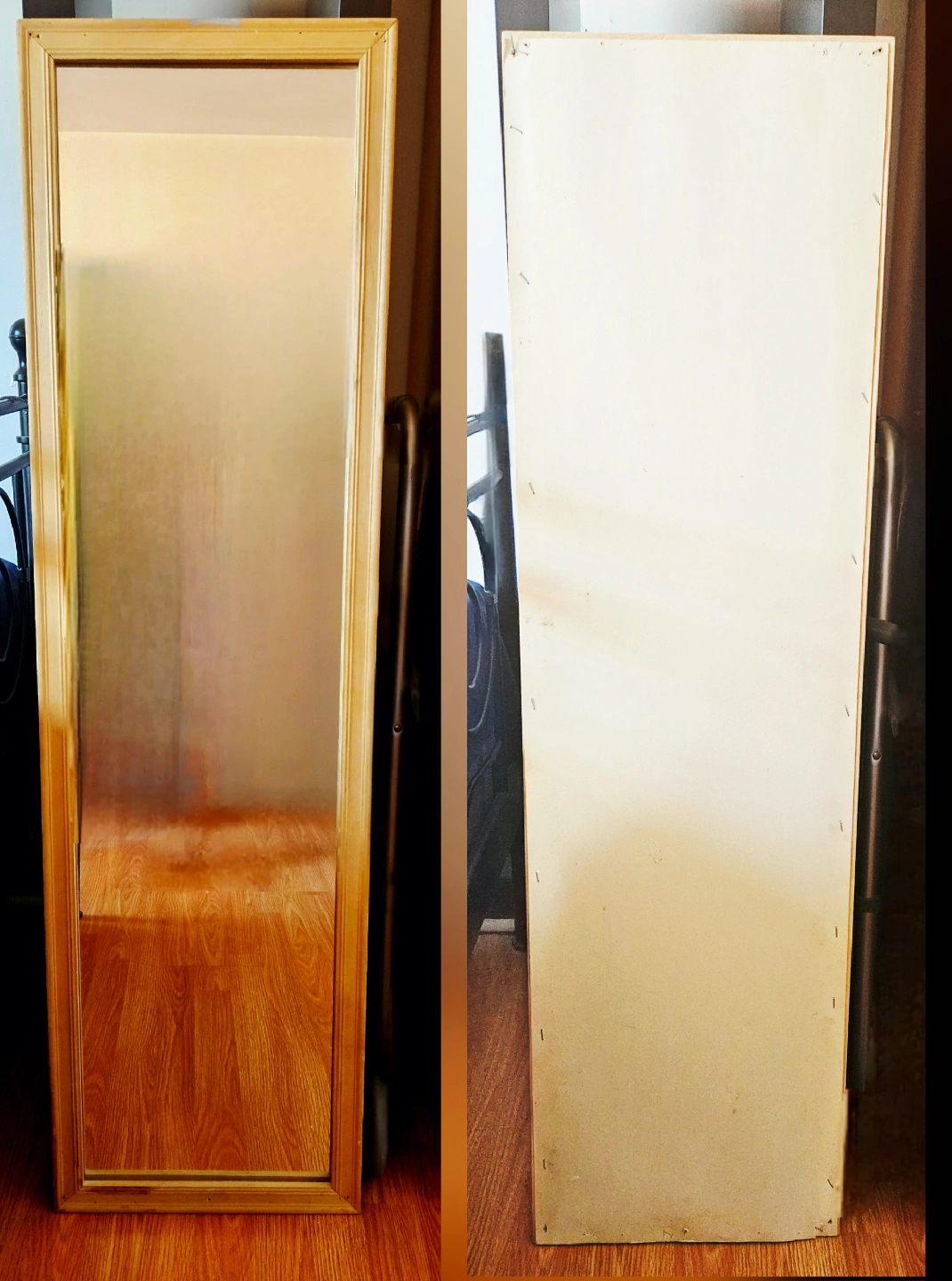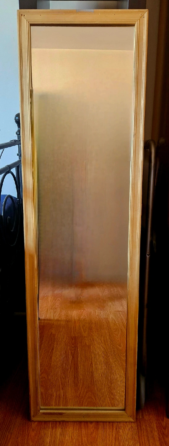 Selling a full-length standing mirror! It's in great condition and ready to brighten up any room. The frame has a classic design that would fit well with most decor styles. It's perfect for getting a full view when getting ready or just adding a touch of elegance to your space. 1st photo is a collage of front and back. From a smoke-free, pet-free home. Bundle discounts are available—feel free to browse my other listings. Thanks for looking! 😊🙏