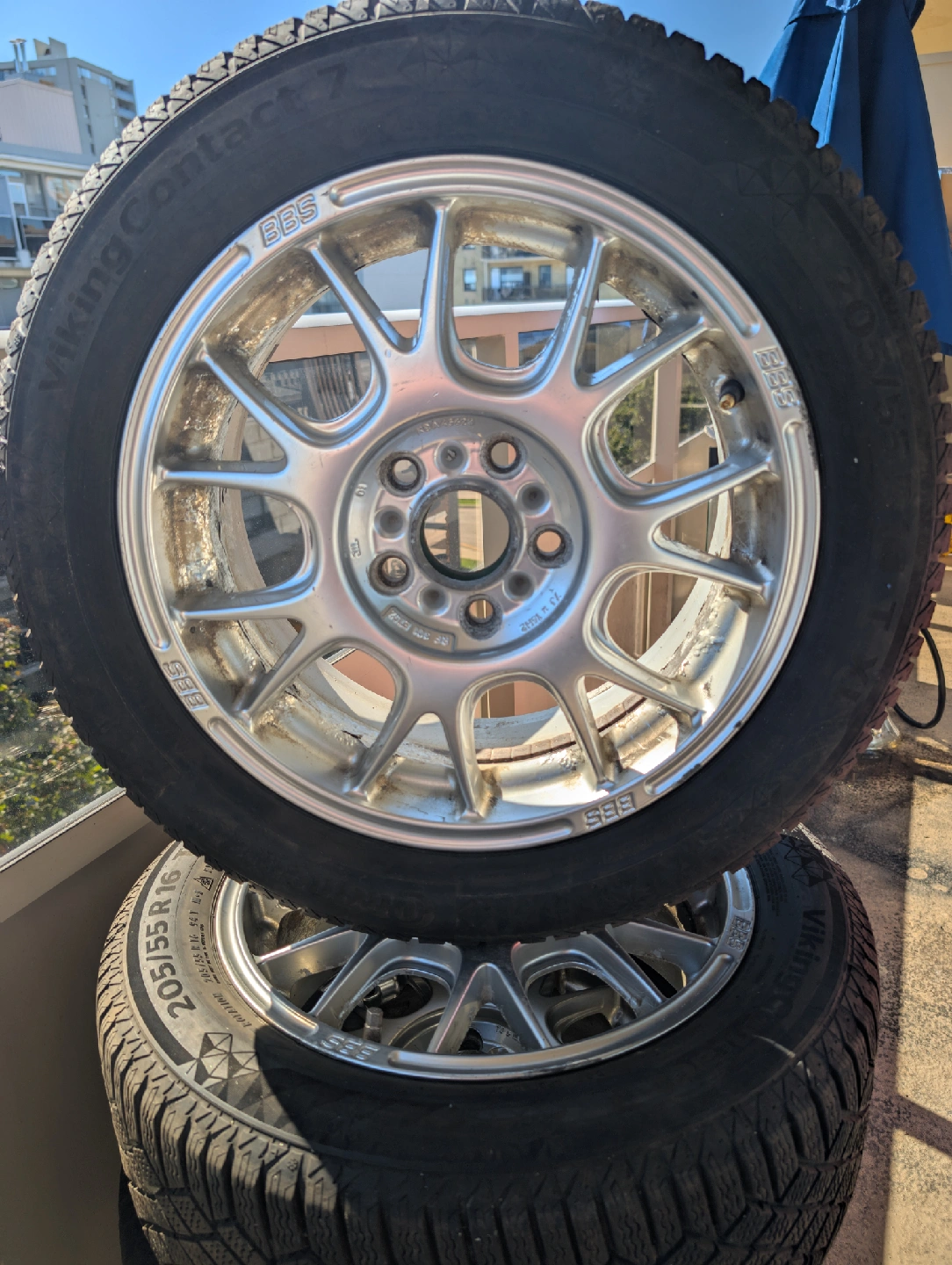 Premium Winter Setup! Continental Tires on BBS Rims (205/55/R16) Selling my complete winter wheel and tire set. Ready to bolt on and keep you safe this season! Tires: Continental WinterContact (Front) & VikingContact (Rear) - 205/55/R16 Rims: BBS Alloy Wheels Bolt Pattern: 5x114.3mm (5x4.5") Condition: Used, with plenty of tread life remaining. Fitment: Fits many compact and mid-size cars (e.g., VW Golf/Jetta, Audi A3/A4, BMW 3-Series, Honda Civic, etc. Please verify your vehicle's fitment). This is a high-quality, matched set from two of the best winter tire lines. No need to pay for mounting and balancing—just install and you're ready for snow and ice! Price: $550 (OBO - Or Best Offer) Serious inquiries only. Please message to arrange a time to see them.