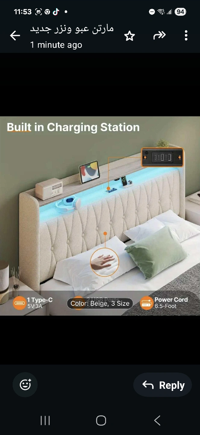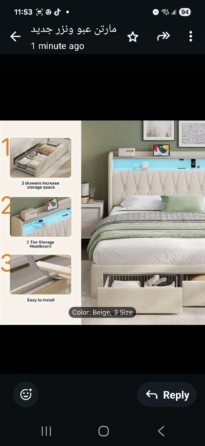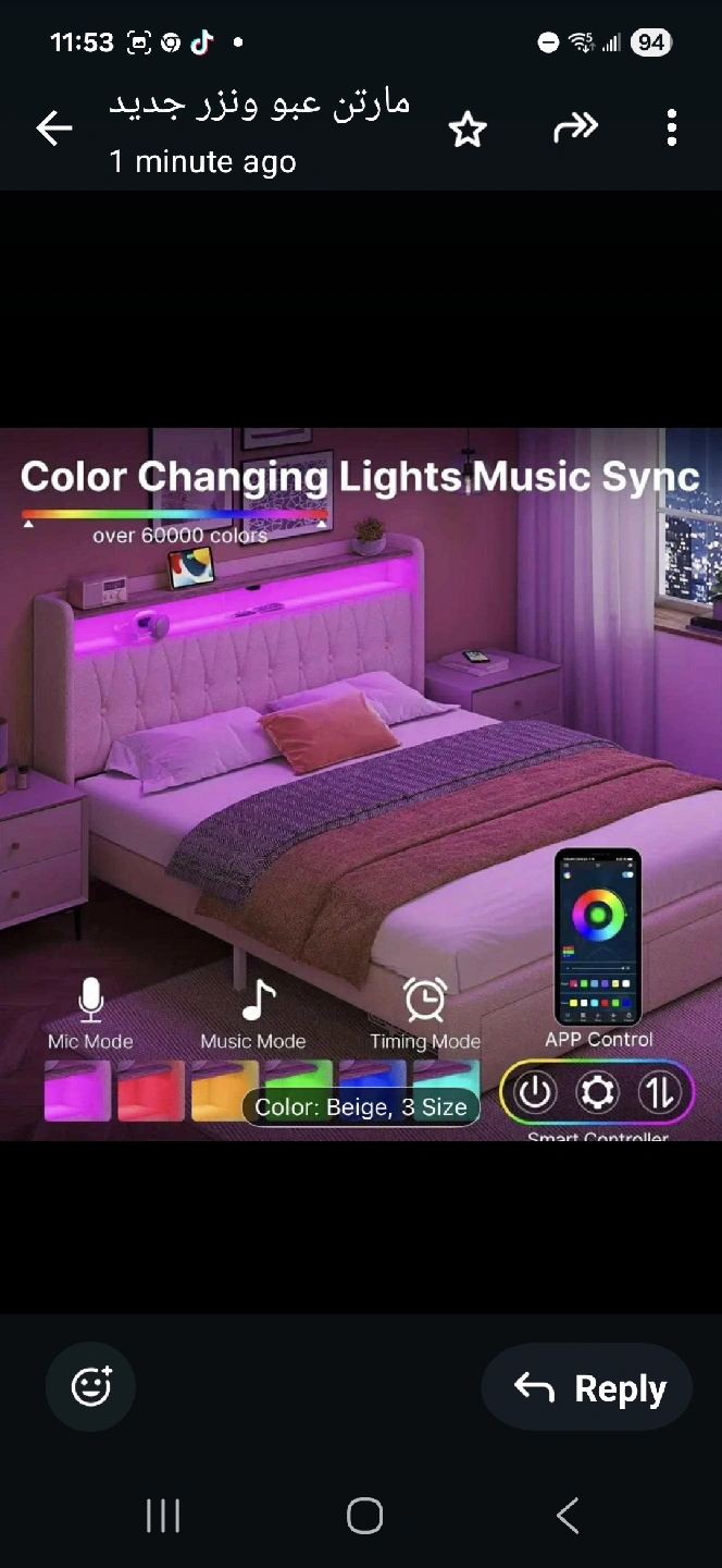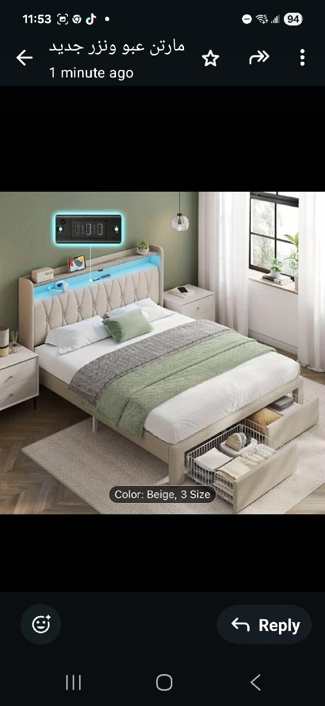 10Looking to upgrade your bedroom? This bed frame comes in beige and size 3! It features a built-in charging station, colour changing lights, and music sync. It also has 2 drawers for increased storage space and a 2 tier storage headboard. Easy to install!