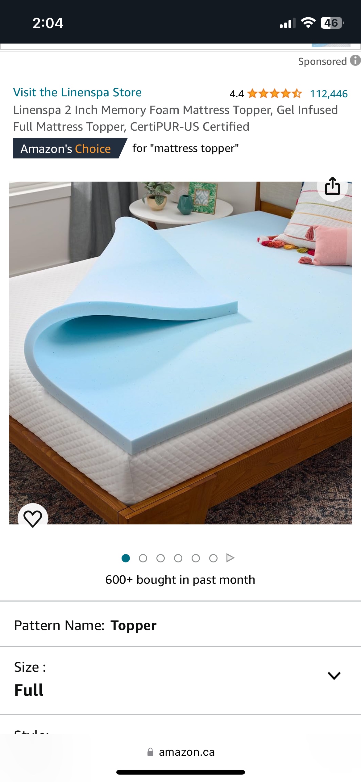 112Very good condition Full size Mattress(Purchased in end of 2022) and Topper(Purchased in Oct 2023) for sale. Mattress was always covered in waterproof protector. The Topper itself is being sold $68.99+hst on Amazon. The link is down below. Selling it as we just got a new queen size bed. https://www.amazon.ca/LINENSPA-Infused-Memory-Mattress-Topper/dp/B01MRL0H2B/ref=mp_s_a_1_1?crid=1XPV39GPEBNXZ&dib=eyJ2IjoiMSJ9.u3f4BTD4NRWqR2hdisU7V-br2FK1aL7wQkP3NkIdi1mIAhSbEg4GzuPxNKAhlgai8Cskd-AP1oDJbr-wThR3-WyrW6gBU8liiArqH6p4tuTJHgpuO4fKFO3_hi3BF04V2caOZr_5iYPaqQ7d_Fxz5AAoQKmxiPC6Qx-UWgSBvFwP1rG0IcMDB3BpUIXjbzYcU2mOisScTvFgWq8iiaw-wQ.Rxcxv_JJ9IbZFM93ABSNmFIBvfGVlN1k9pkoX8uXZNE&dib_tag=se&keywords=mattress+topper&qid=1708627961&sprefix=topper%2Caps%2C97&sr=8-1-spons&sp_csd=d2lkZ2V0TmFtZT1zcF9waG9uZV9zZWFyY2hfYXRm&psc=1