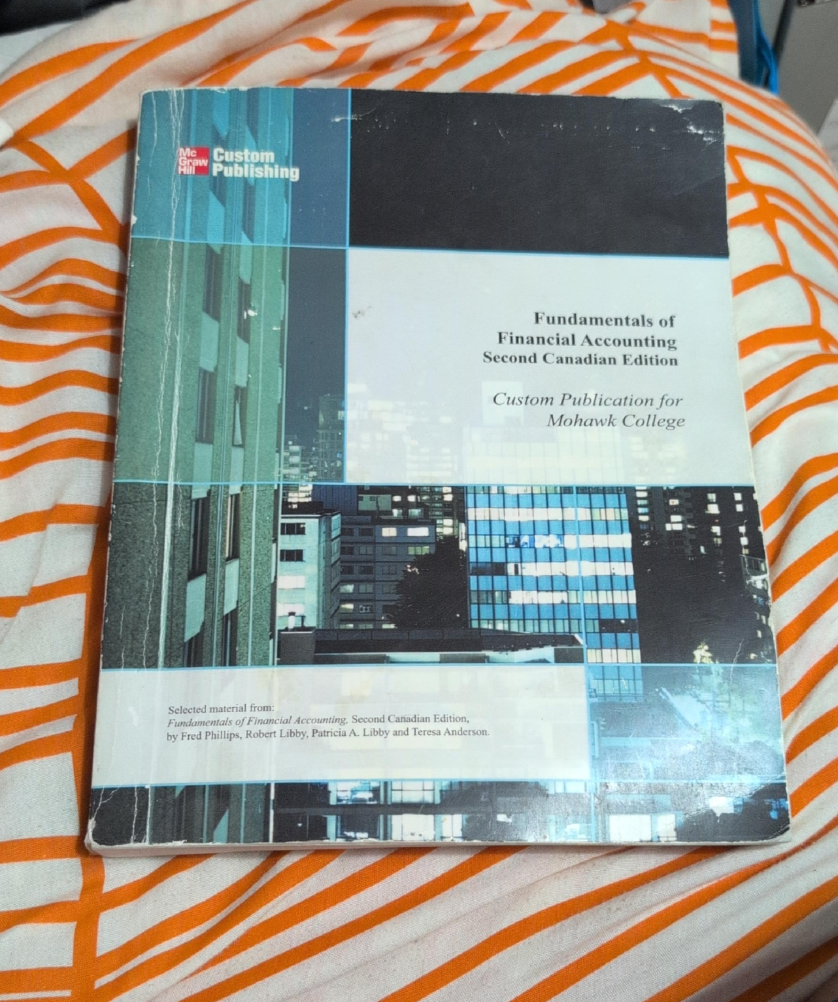 60Selling a used copy of 'Fundamentals of Financial Accounting, Second Canadian Edition' by Fred Phillips, Robert Libby, Patricia A. Libby and Teresa Anderson. It's a custom publication for Mohawk College. Perfect for students!