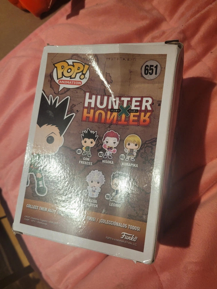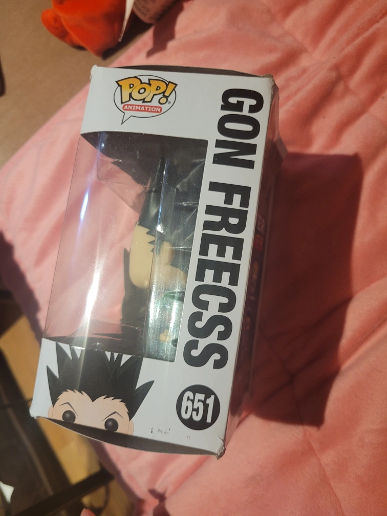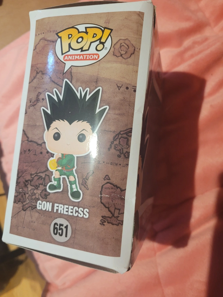 58Selling a Funko POP! Animation figure of Gon Freecss from Hunter x Hunter. This is figure #651. It comes in its original box, unfortunately in my move recently the box was squished but the figure is fine! selling it due to needing money