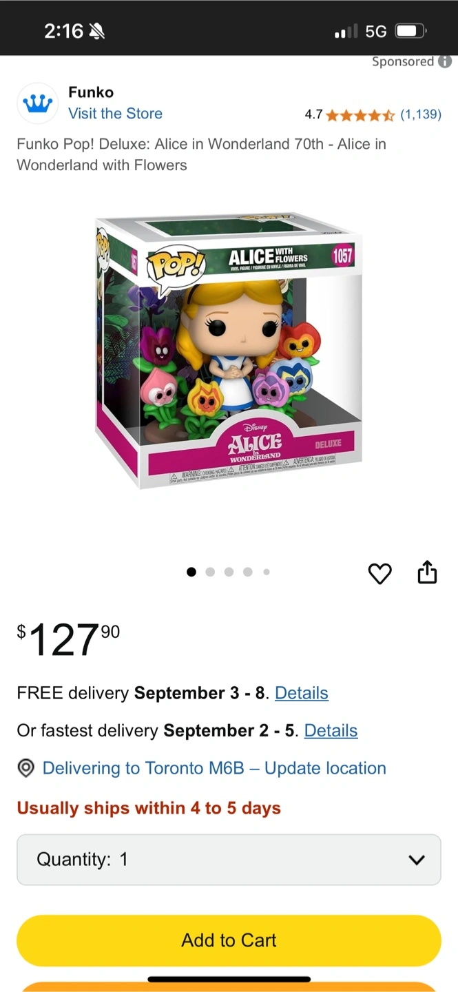 Selling a Funko Pop! Deluxe figure of Alice in Wonderland with Flowers. It's the 70th anniversary edition.