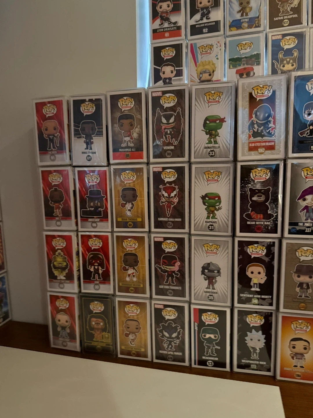 Selling a variety of Funko Pop! figures. Includes characters like Mike Tyson, Muhammad Ali, Venom, Donatello, Raphael, and more! Perfect for collectors or fans of these characters.