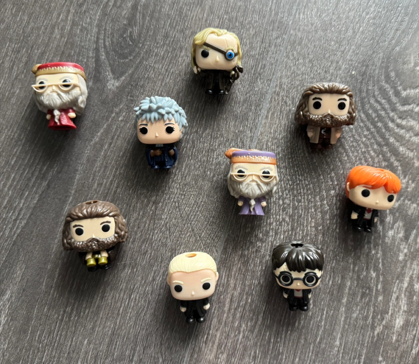 Collectible items, perfect for fans. Small size, great detail. $5 each or can be changed to Snape figure from this series Harry Potter - SOLD Ron Weasley Dumbledore in purple (in red - SOLD) 2 different Hagrid Draco Malfoy Alastor Moody Madam Hooch Pick up at Don Mills