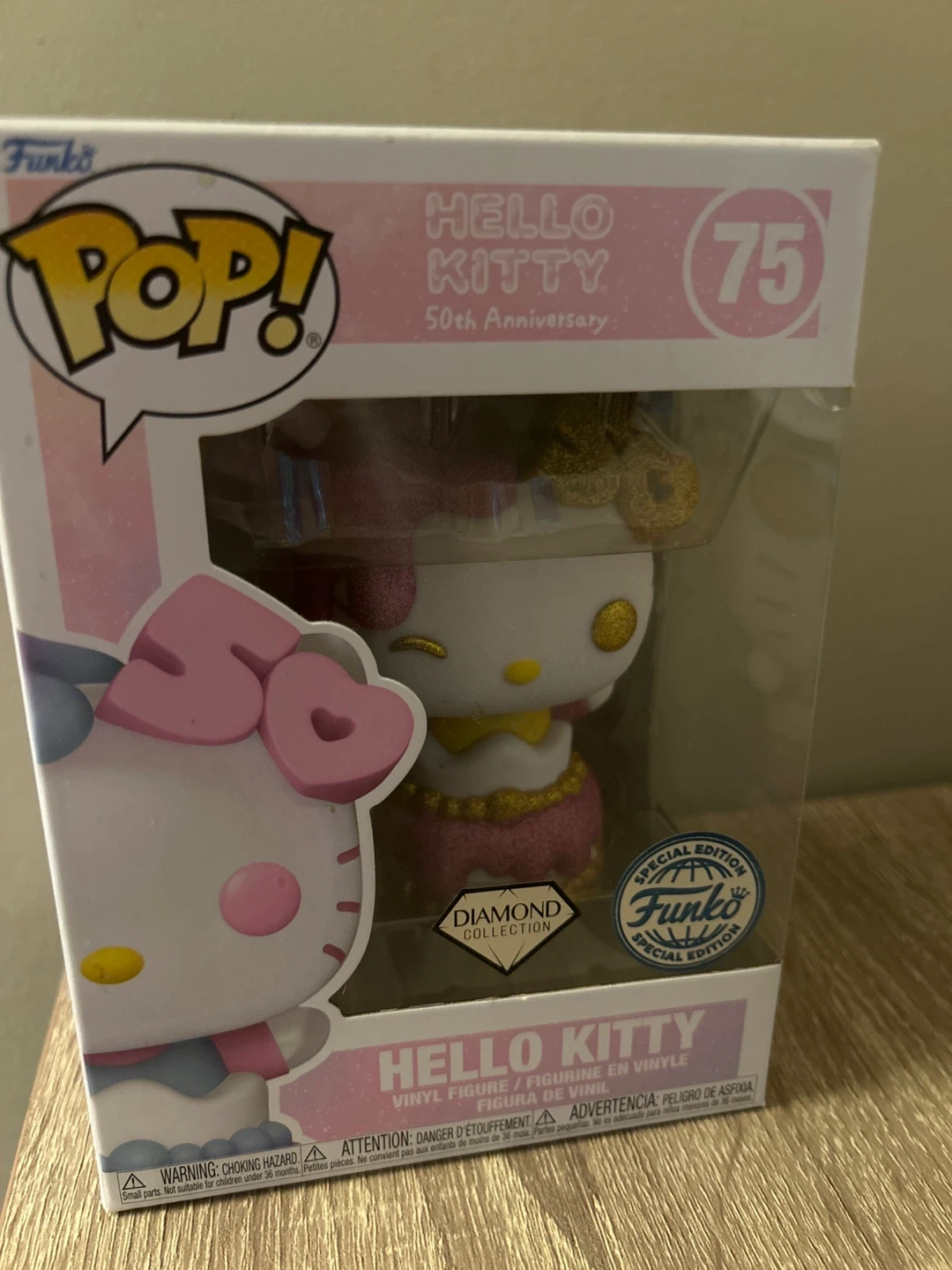 10Selling a Funko Pop! Hello Kitty 50th Anniversary figure, number 75 in the series! It's part of the Diamond Collection and a Special Edition Funko item. A great addition to any Hello Kitty or Funko Pop collection Has just been collecting dust and I’m doing a moving out sale!