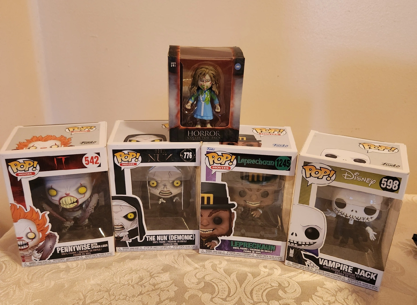 Selling a collection of Funko POP! vinyl figures, perfect for any collector! Includes: - Pennywise #542 - The Nun (Demonic) #776 - Leprechaun #1245 - Vampire Jack #598 - Horror Collector Pack